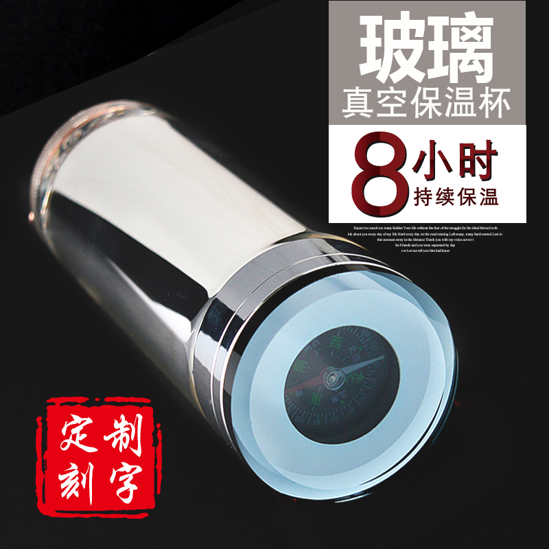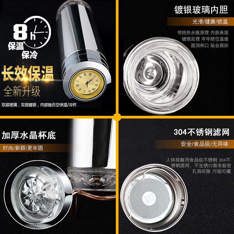 玻璃杯男保温双层泡茶水杯商务带盖便携镀银内胆礼品杯子定制刻字