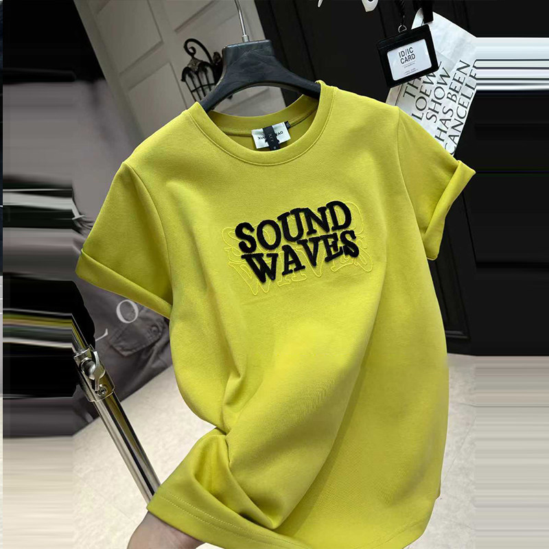 大码女装圆领短袖字母上衣宽松遮肚子减龄百搭韩版休闲显瘦T恤衫