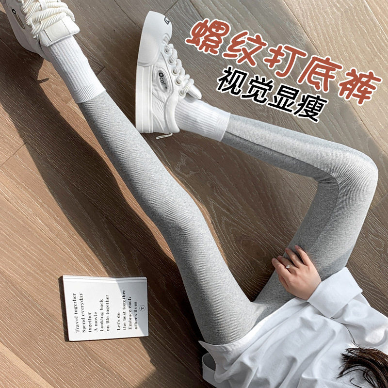 螺纹打底裤女秋冬季外穿舒适紧身高腰提臀修身显瘦弹力长裤小脚裤