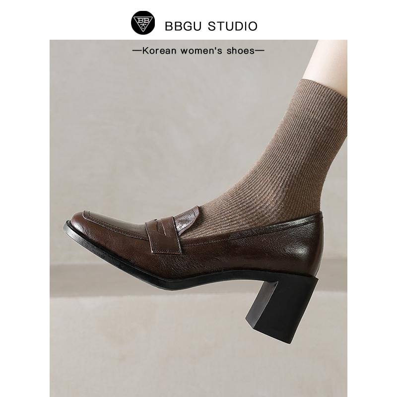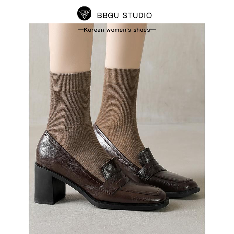 BB古· 韩国丨手工真皮鞋2025~羊皮单鞋粗跟高跟鞋女方头乐福鞋