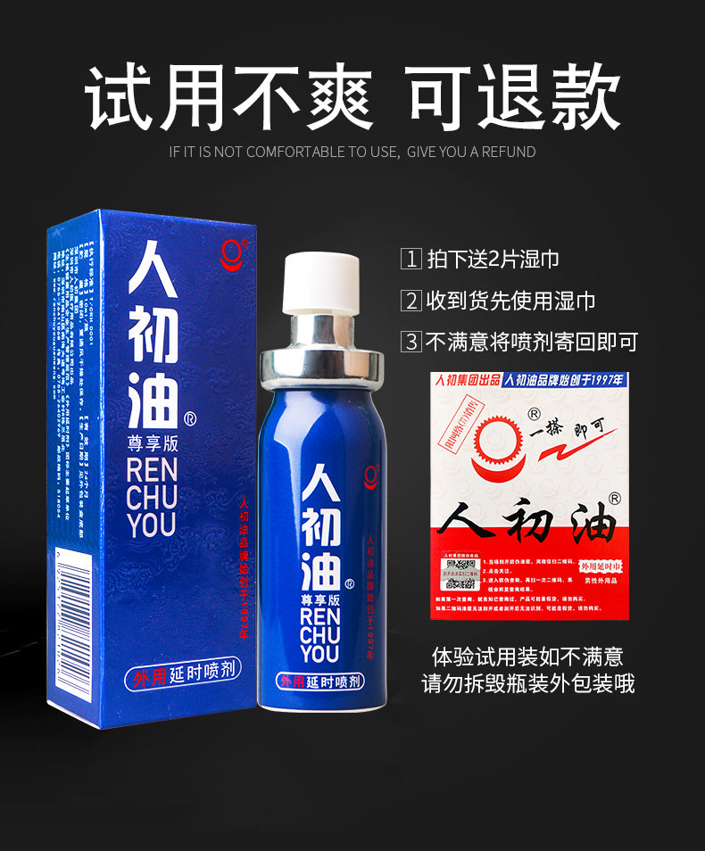 【官方旗舰店】人初油延时喷剂男用湿巾纸持久夫妻性用品印度神油