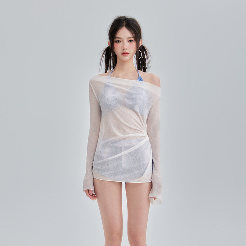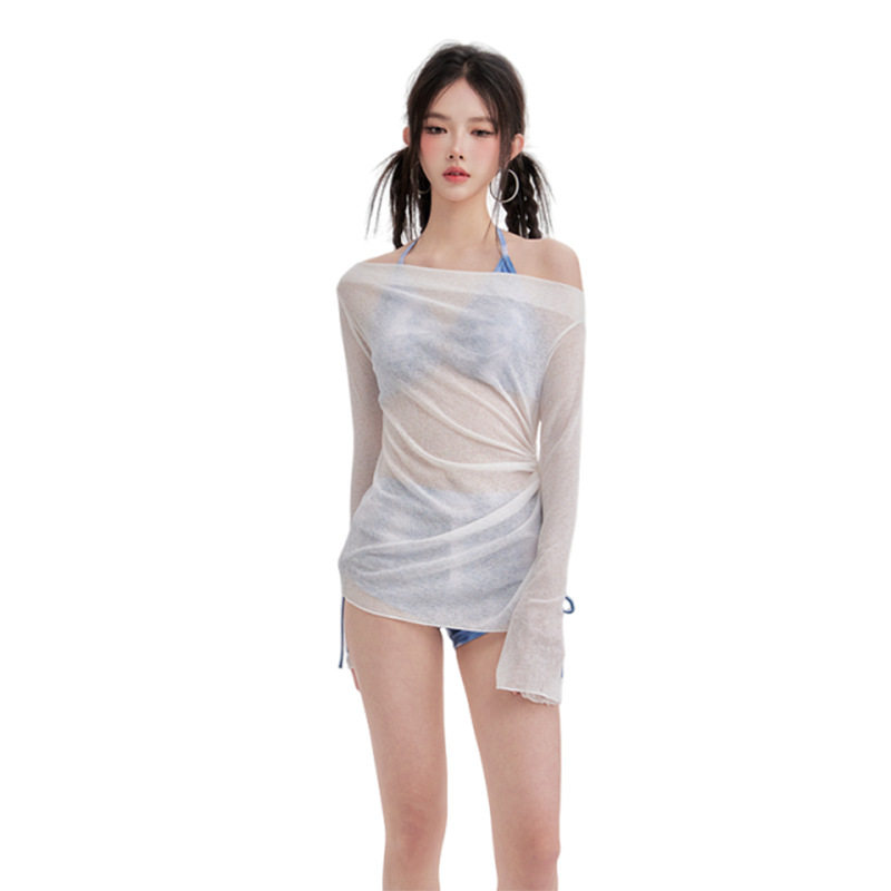 泳衣女分体罩衫印染牛仔三件套遮肚显瘦保守度假温泉小胸纯欲风