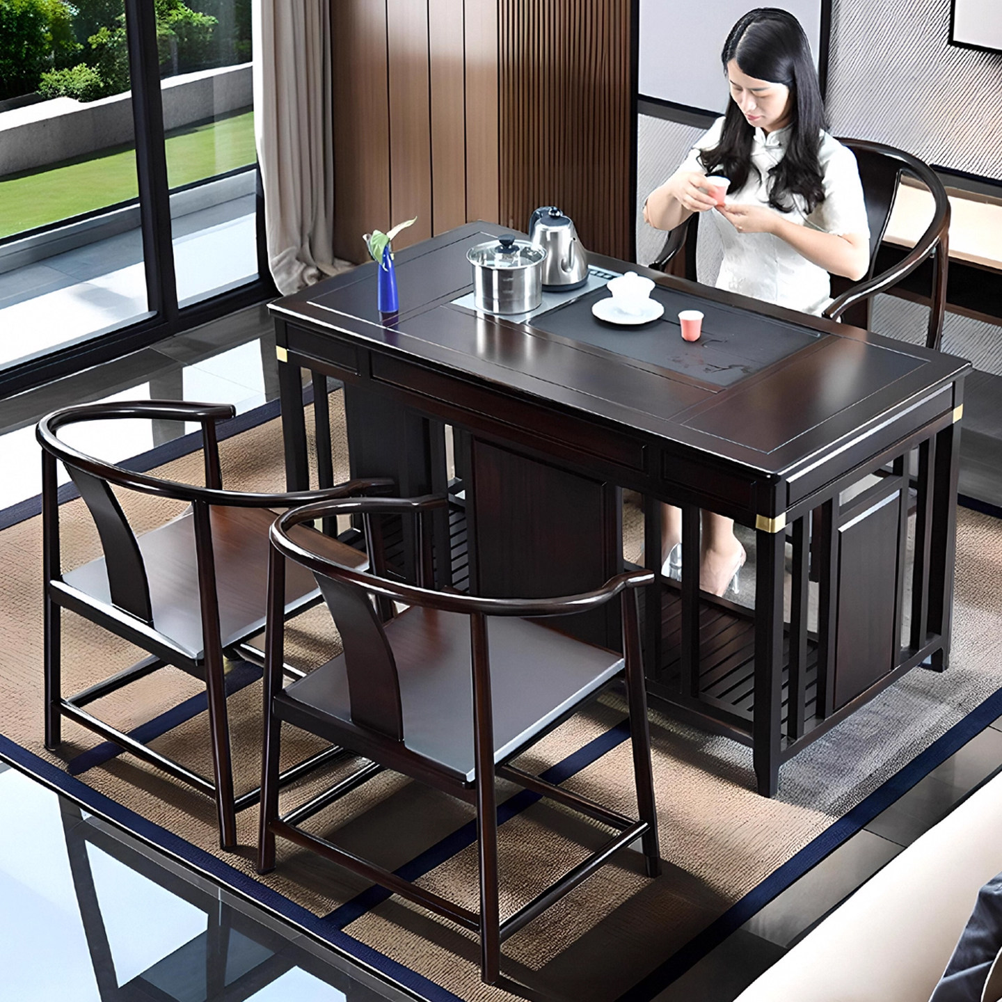 朴房茶台茶桌实木新中式家用小阳台功夫茶桌书桌两用多功能茶家具