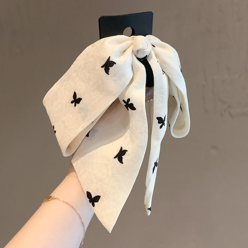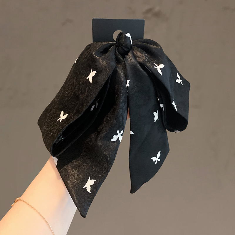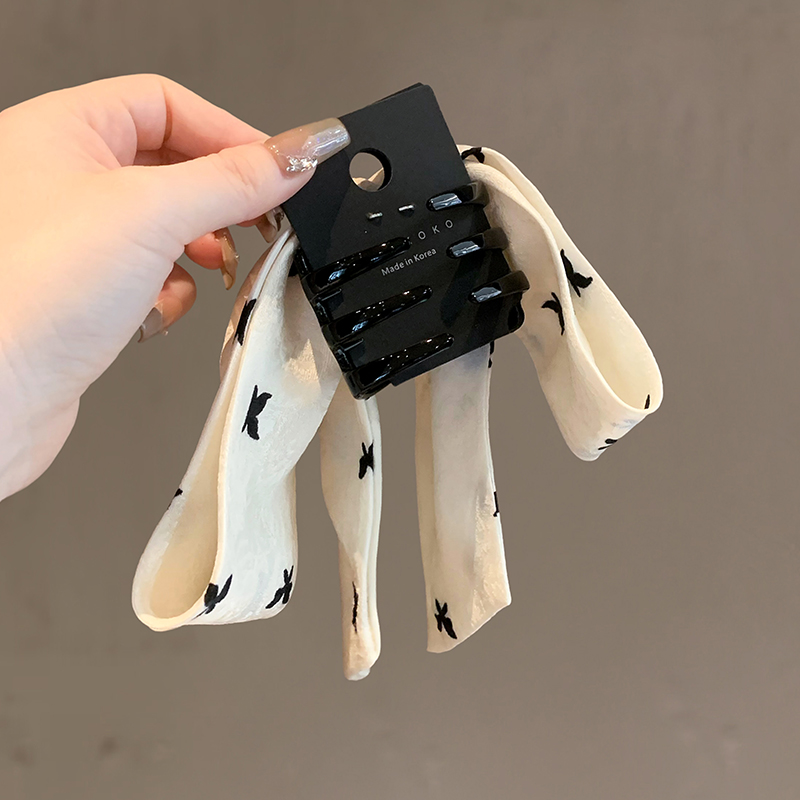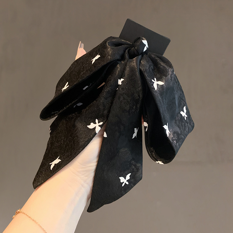 韩系甜美印花高马尾夹气质氛围蝴蝶结抓夹通勤盘发夹百搭布艺夹子