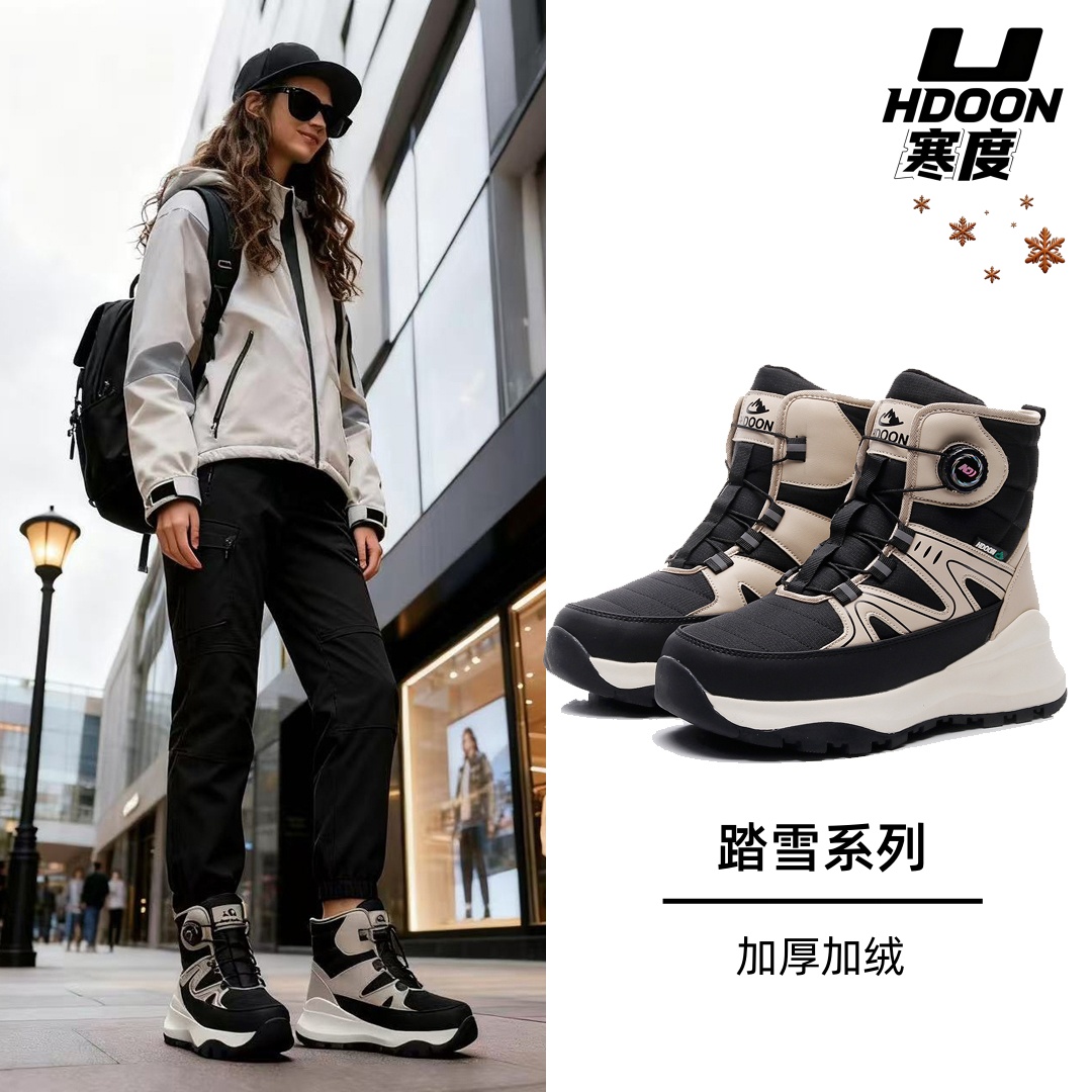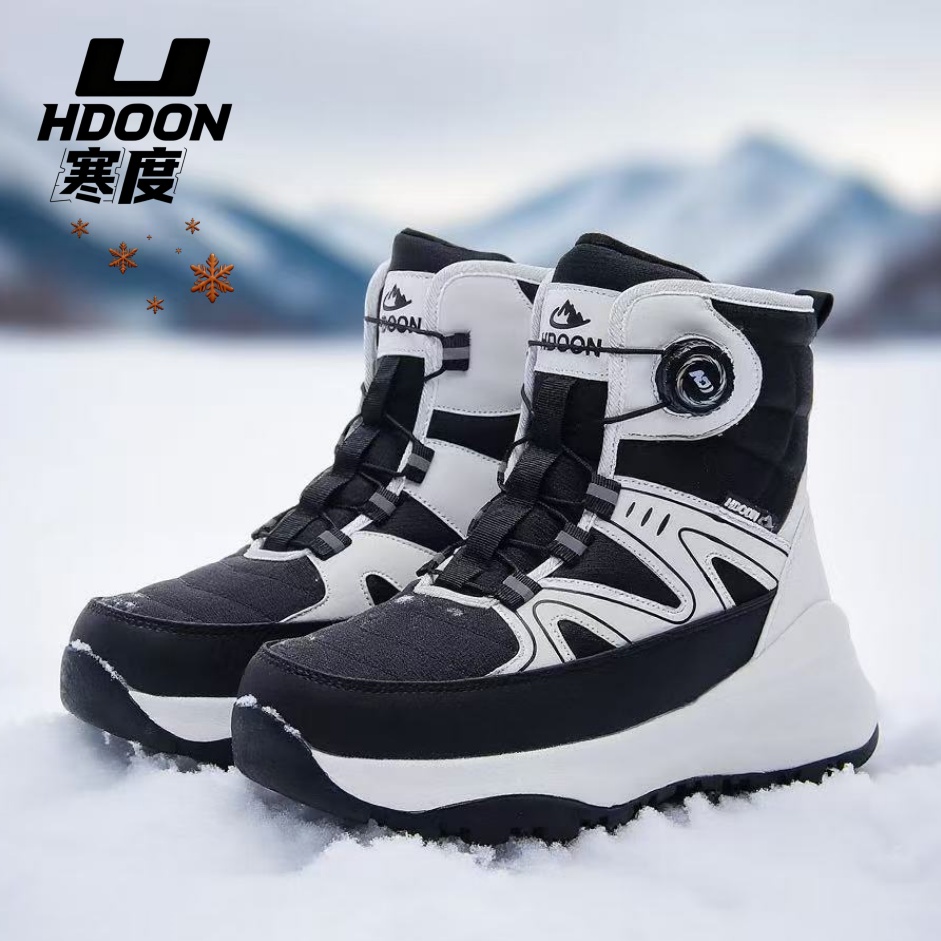 旋转扣雪地靴女2025新品加厚加绒东北棉靴男防水防滑户外抗寒靴