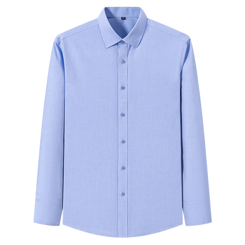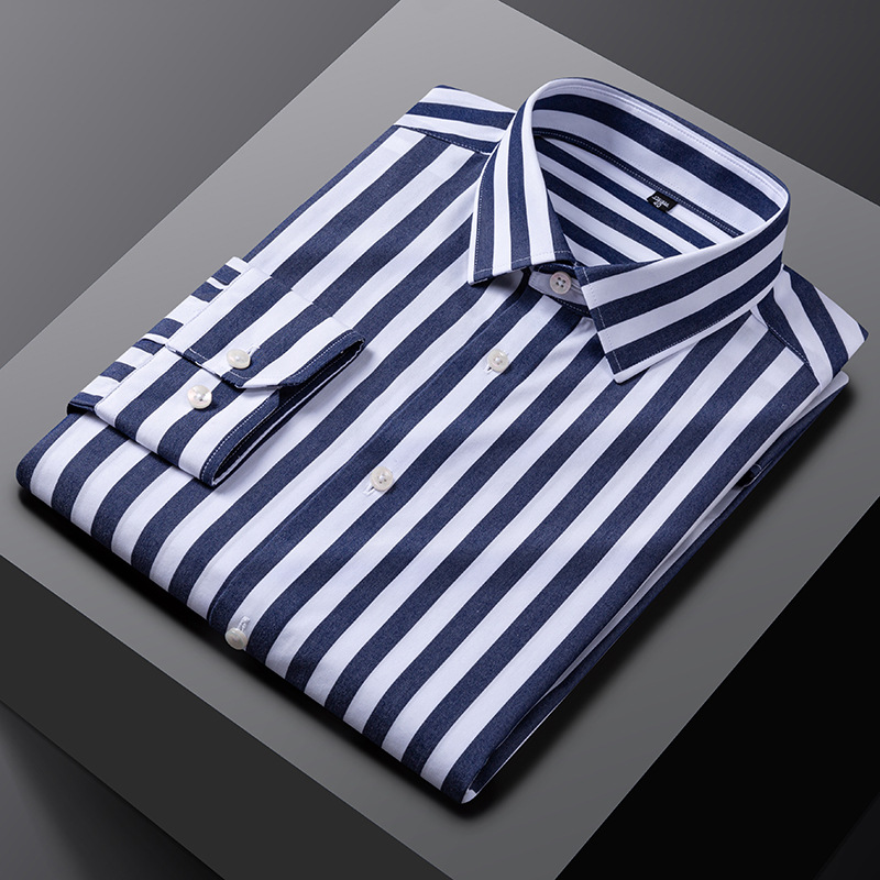 100%纯棉秋季衬衫男DP免烫蓝白条纹中年爸爸装商务休闲西装打底衫
