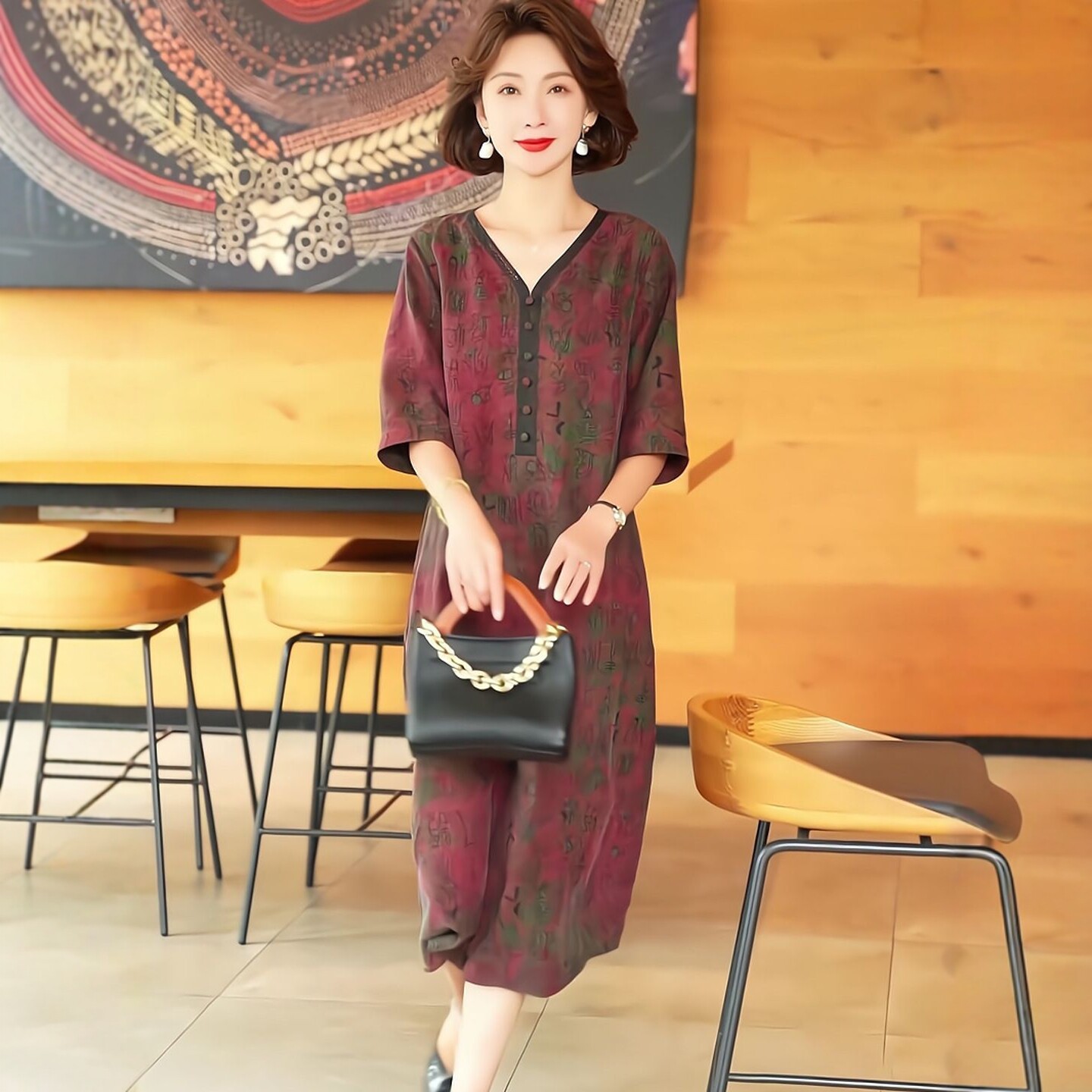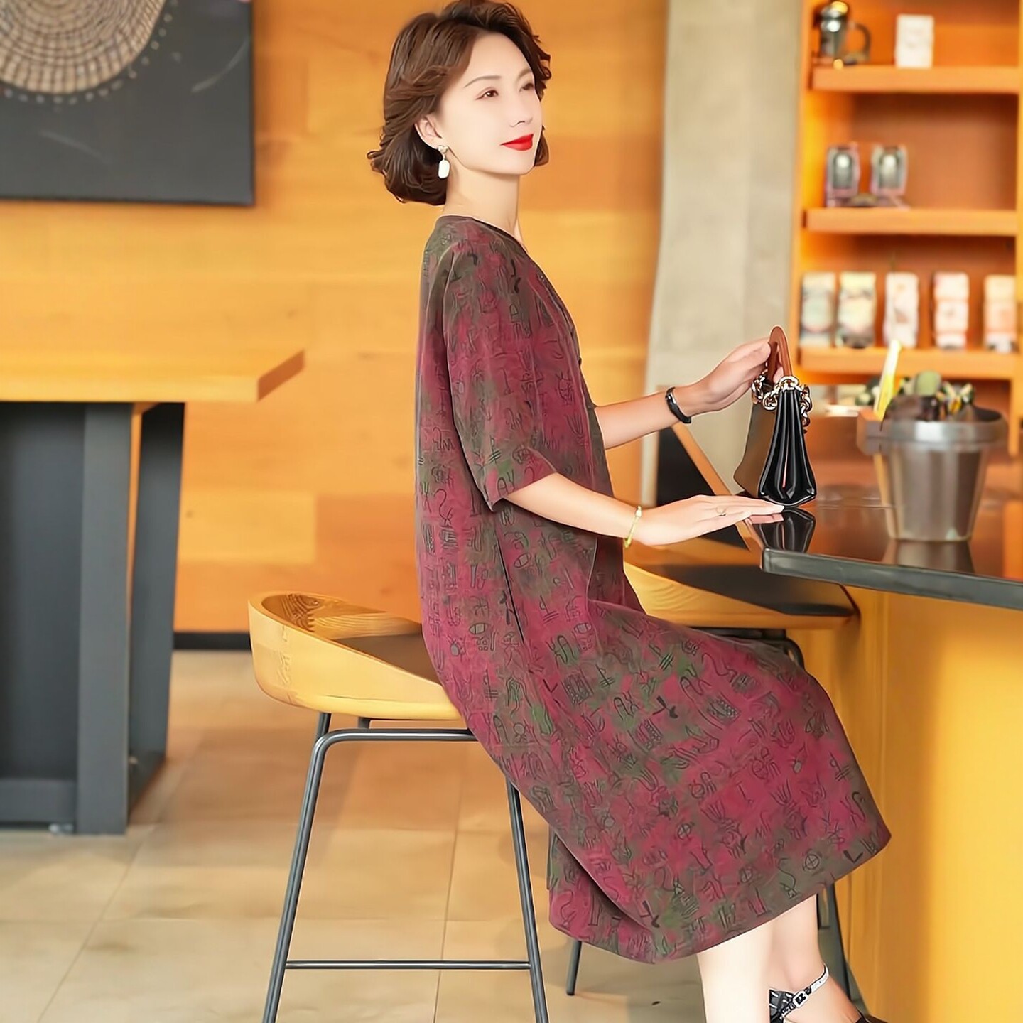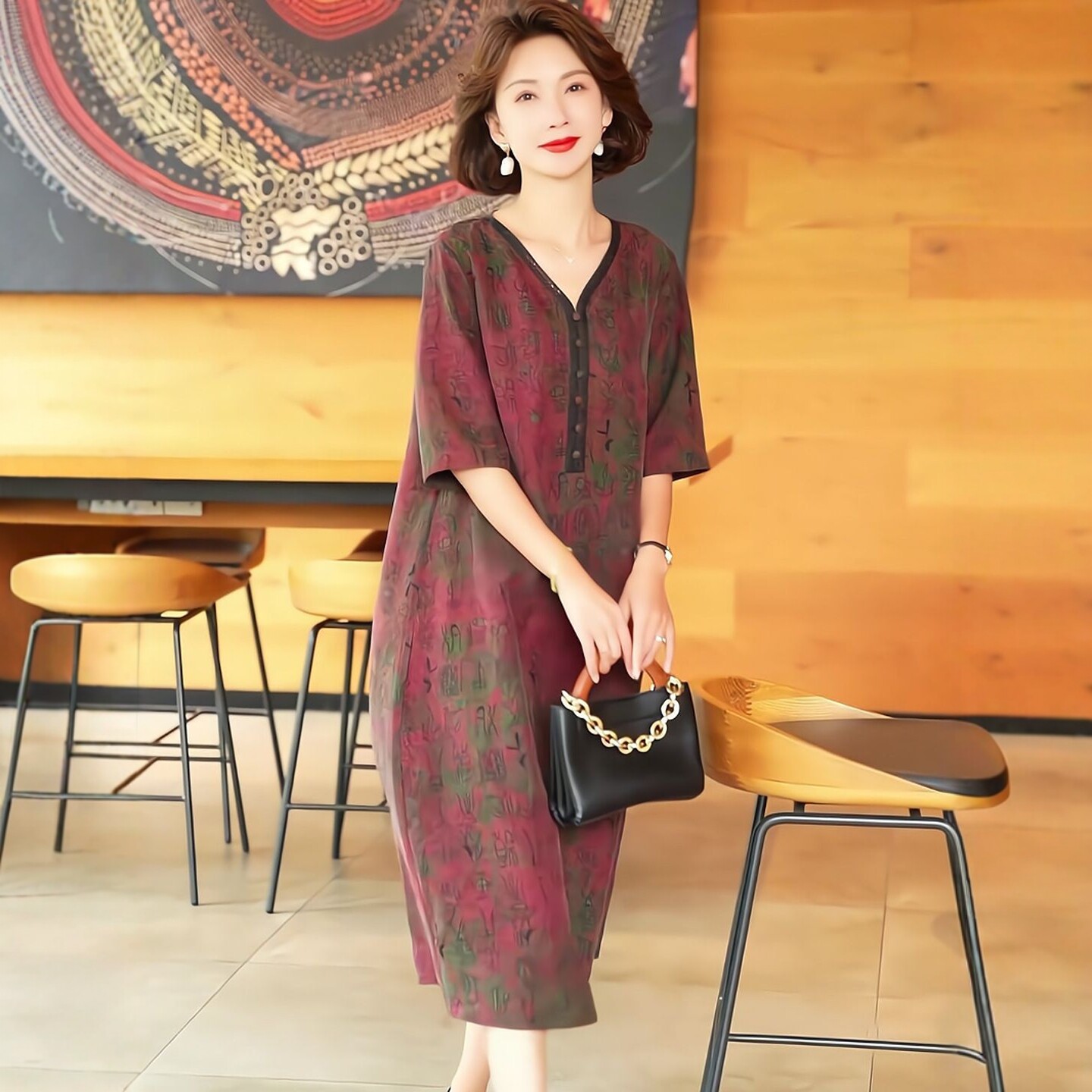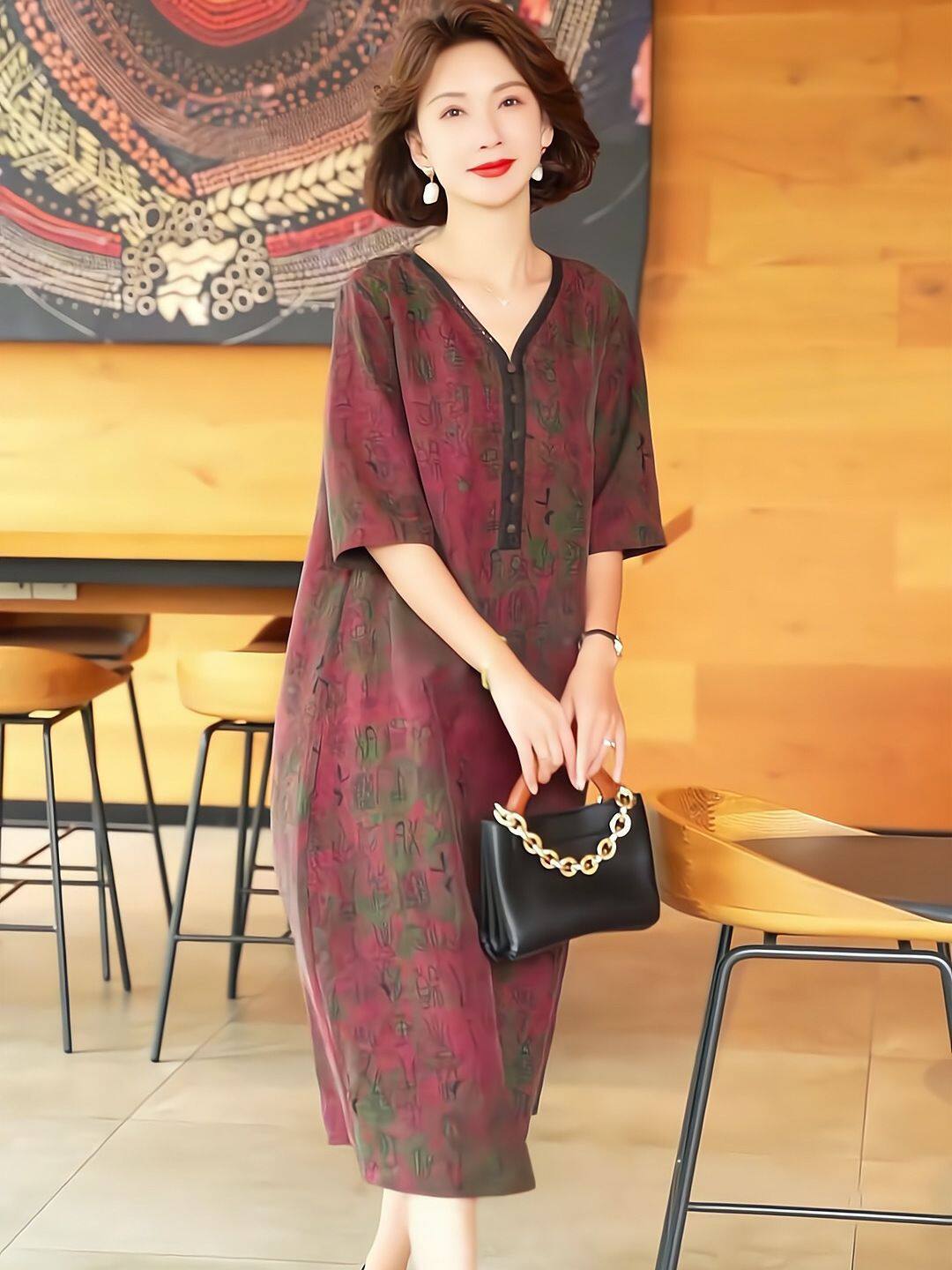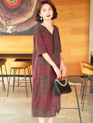 2025夏季时尚浪漫大牌杭州香云纱真丝连衣裙女气质妈妈桑蚕丝裙子