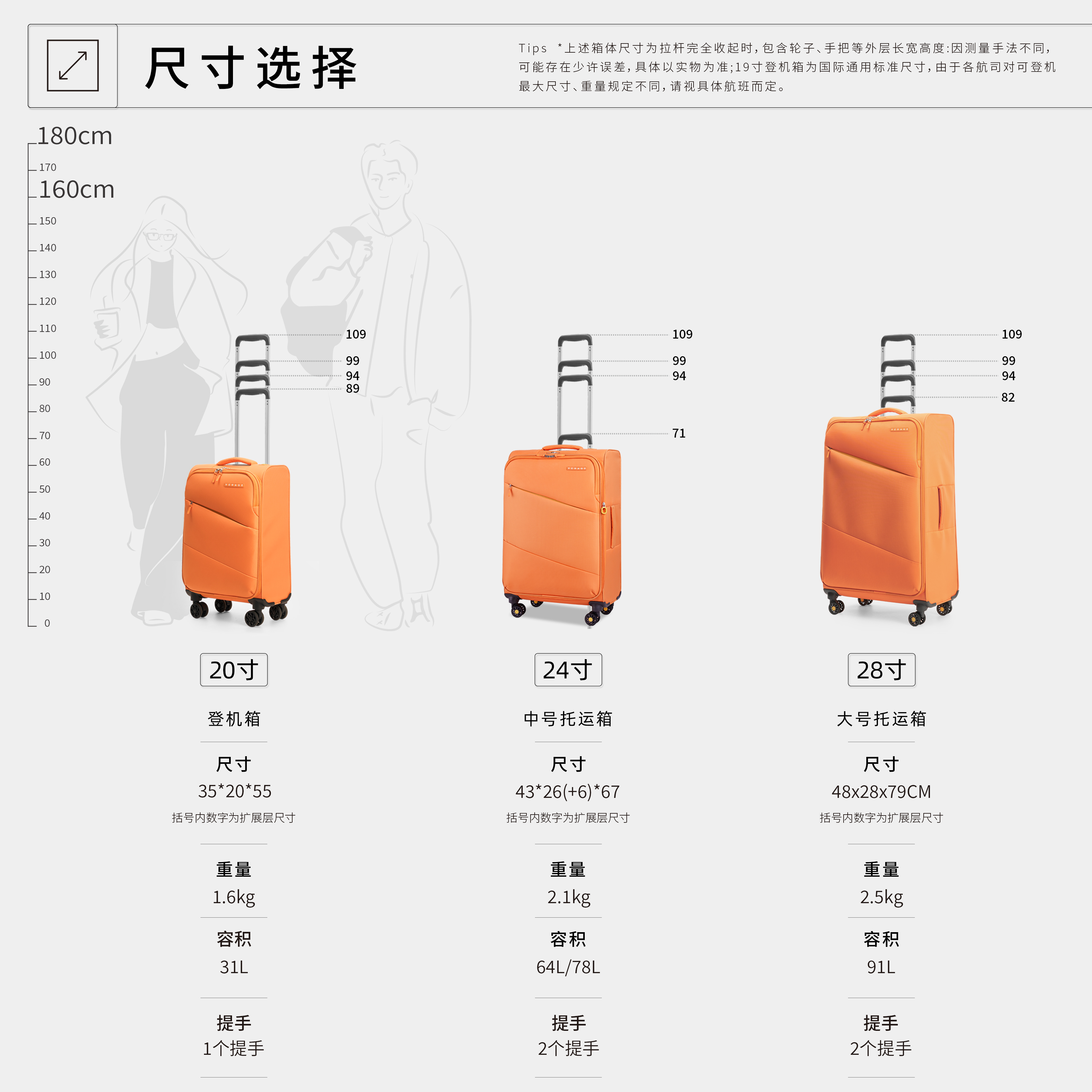 VERAGE/维丽杰旅行箱拉杆箱子行李箱包牛津布超轻20寸出国留学箱