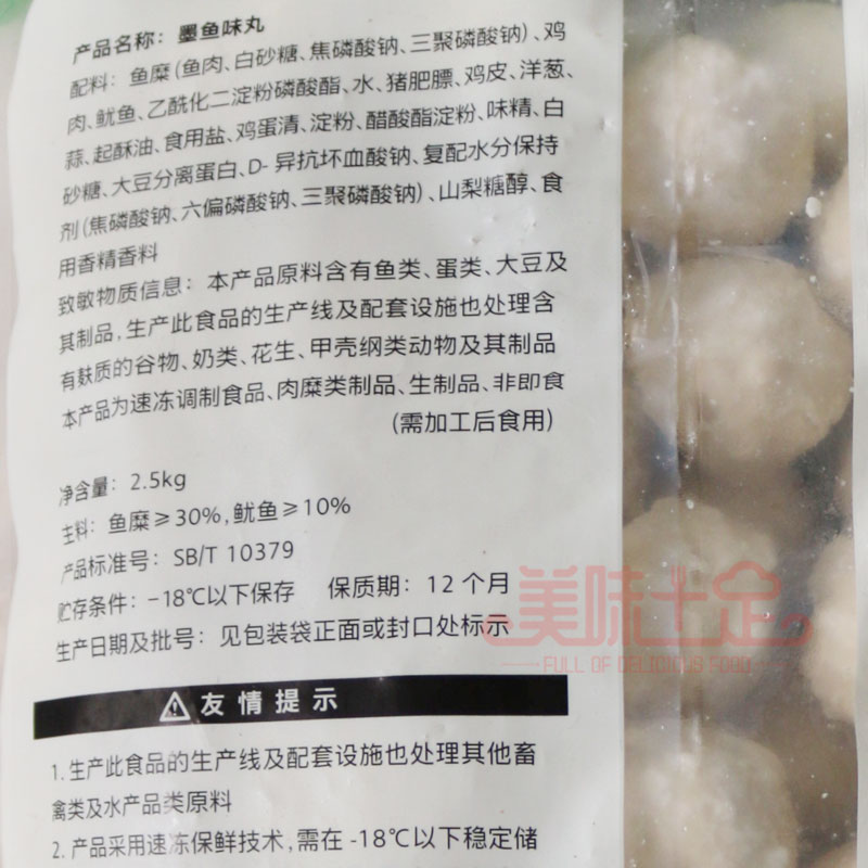 整箱安井墨鱼味丸2.5Kg*4包目鱼丸火锅串串香关东煮安井仿墨鱼丸