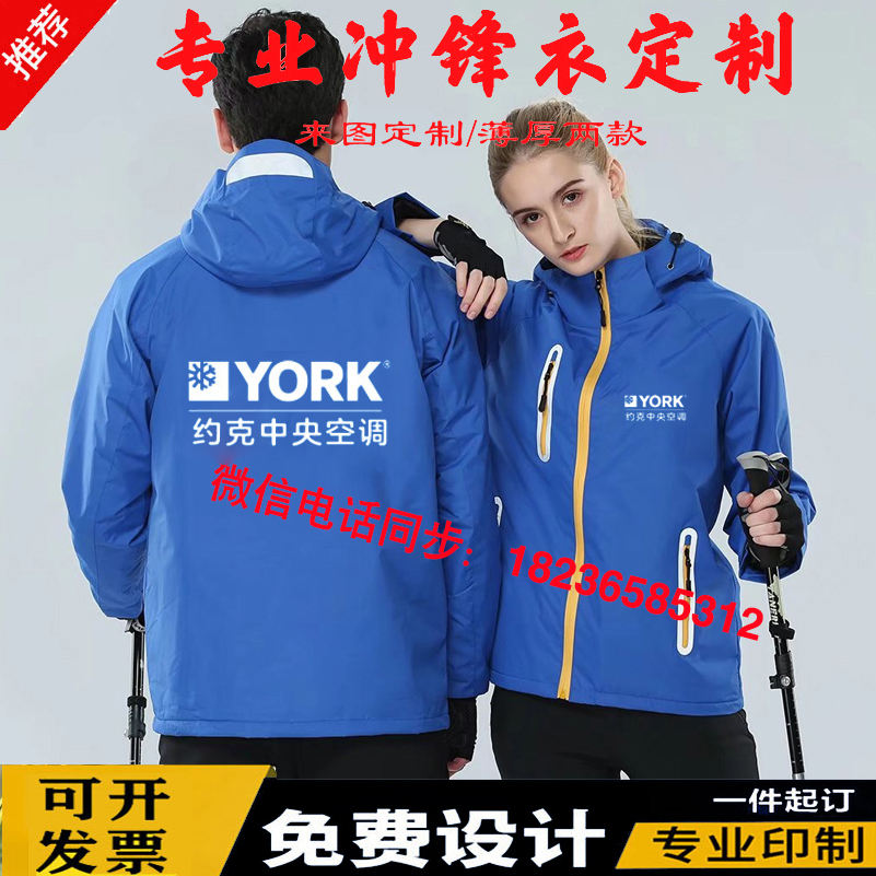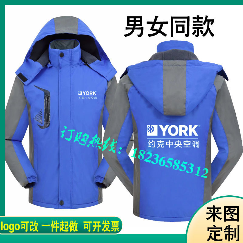 约克空调工作服冲锋衣定制日立中央空调工衣加绒反光外套印字logo