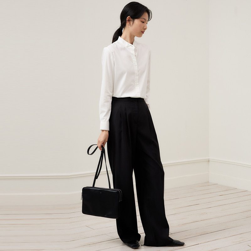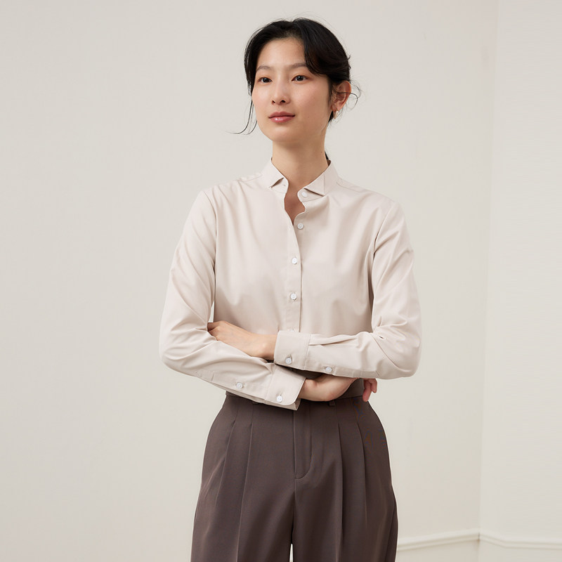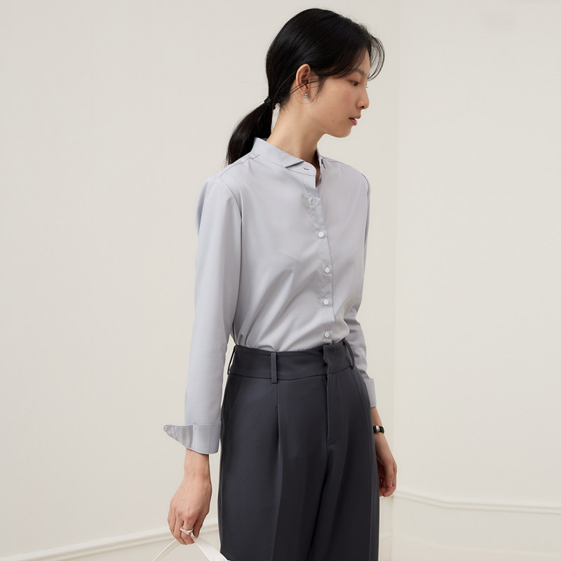 宿·色白衬衫女长袖别致小翻领春季新款正装工作服面试衬衣