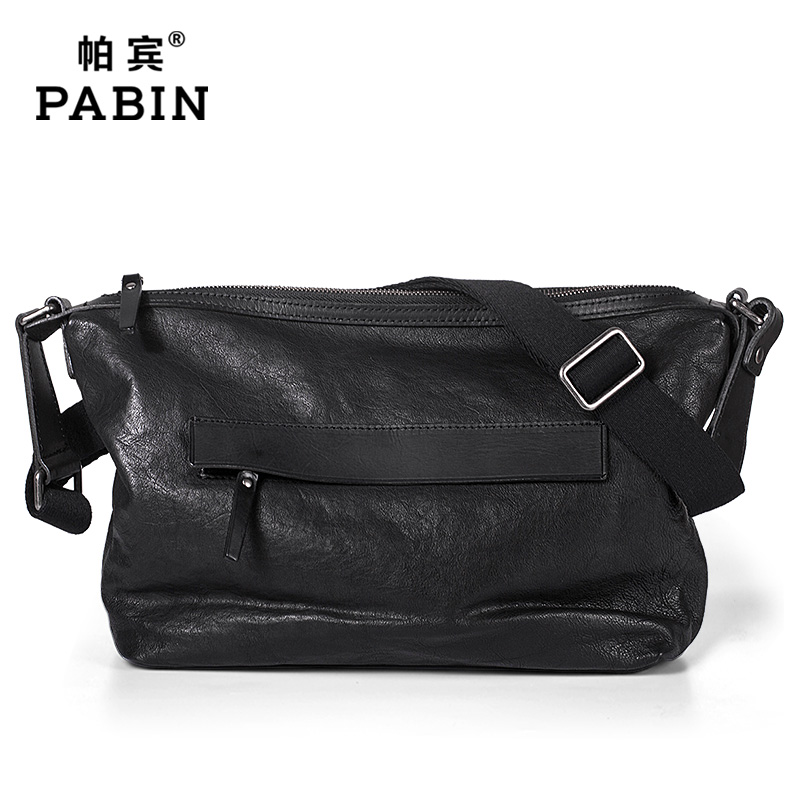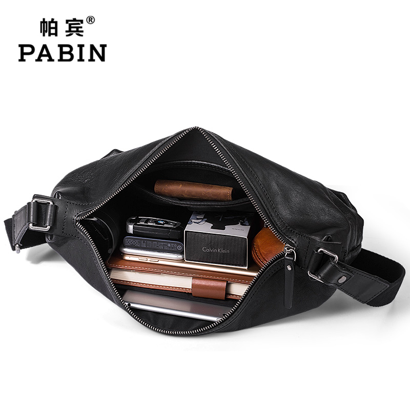 帕宾男包单肩包男真皮斜挎包公文包商务休闲男士包包牛皮背包潮