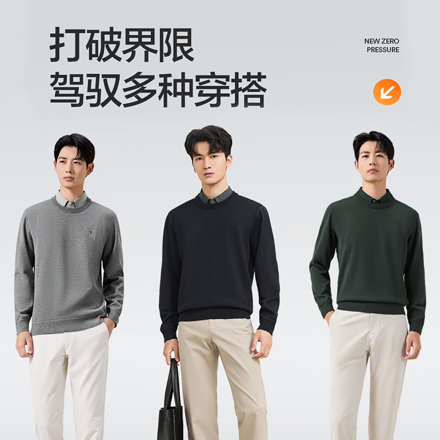 【加绒假两件】柒牌加厚毛衣男2025冬季新款休闲保暖含羊毛针织衫