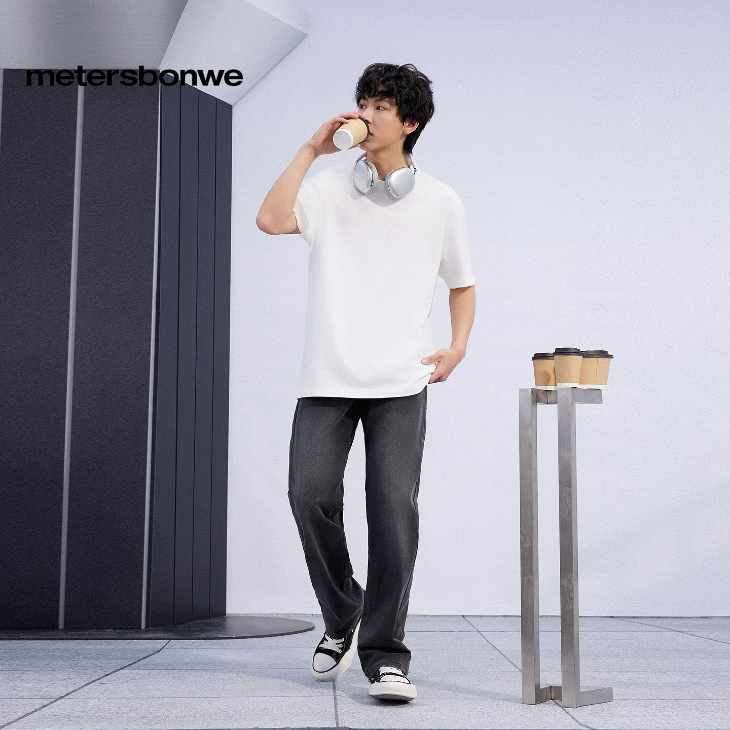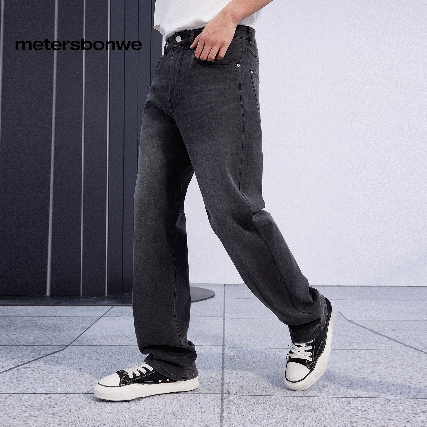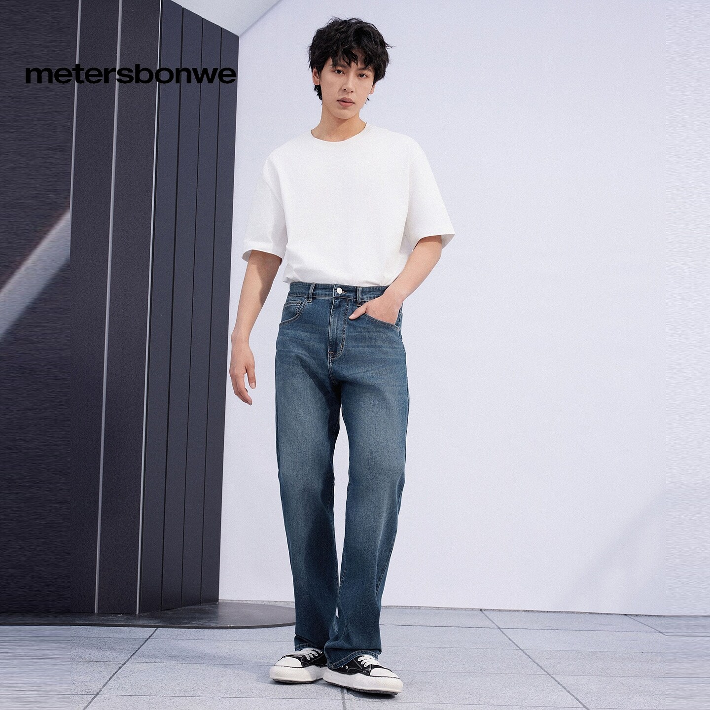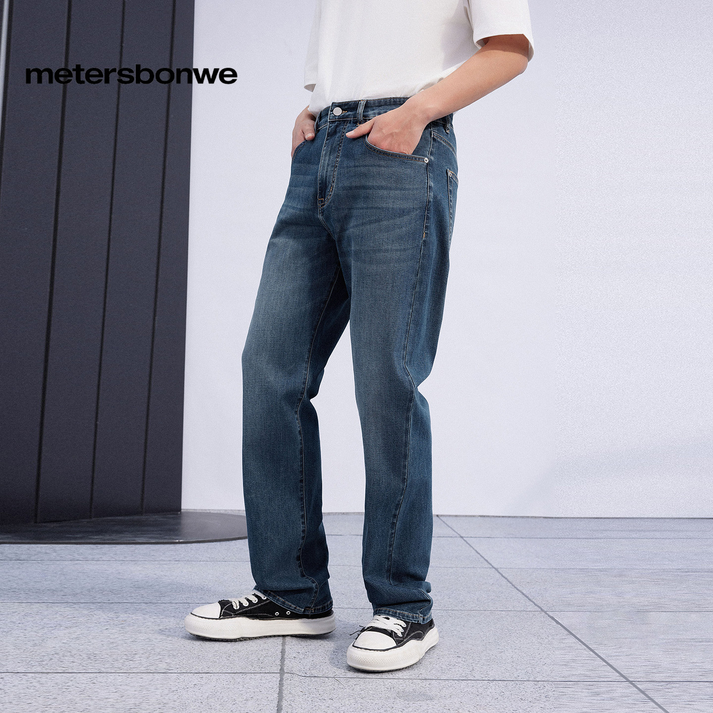 美特斯邦威水洗直筒牛仔裤男