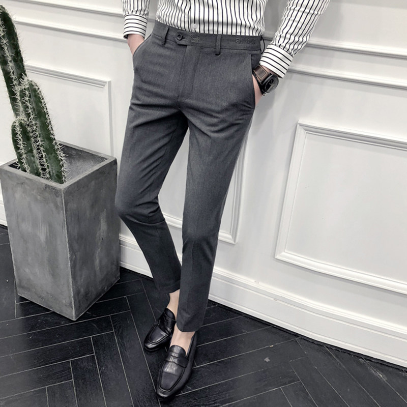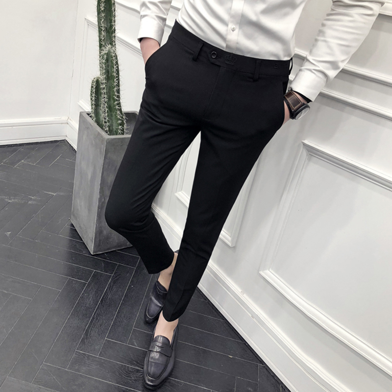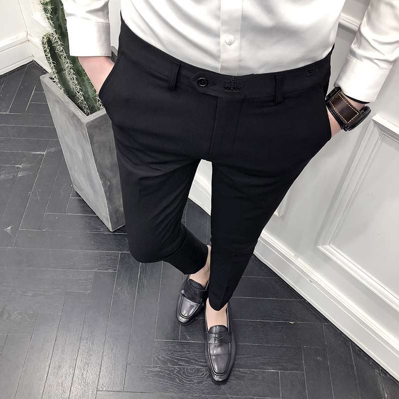 男士通勤西装长裤英伦风休闲痞帅发型师西裤修身小脚刺绣九分裤潮