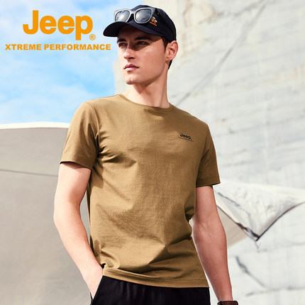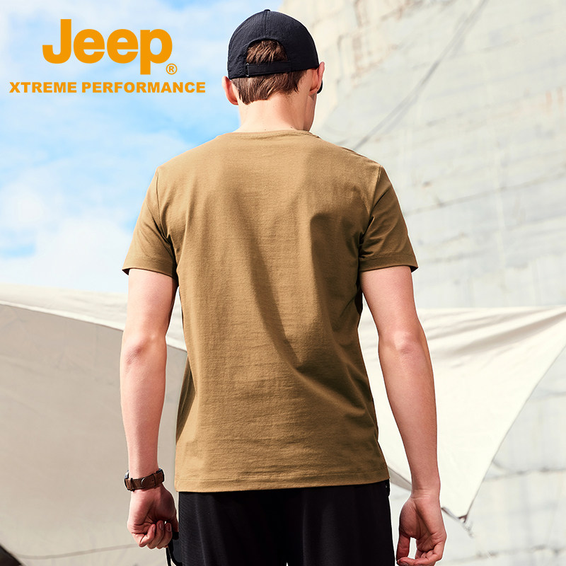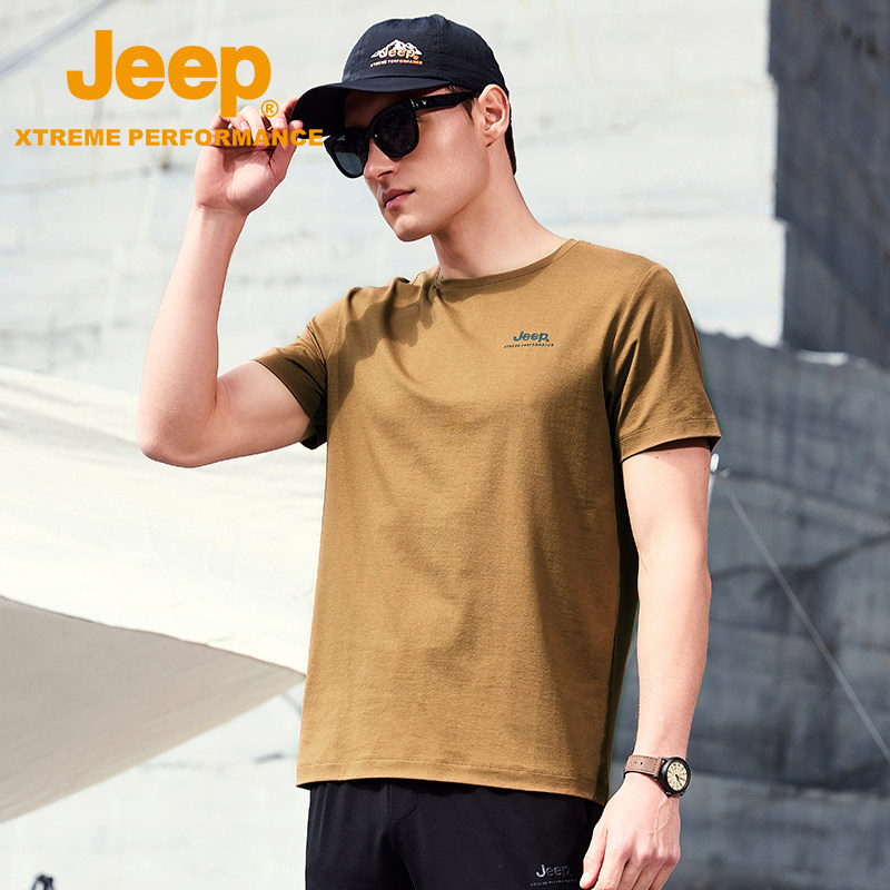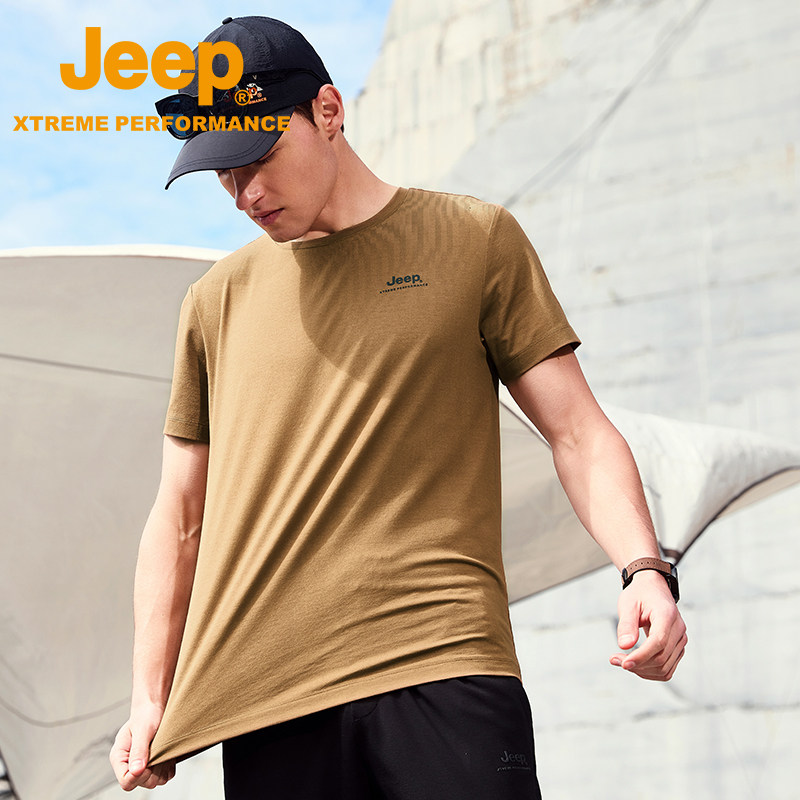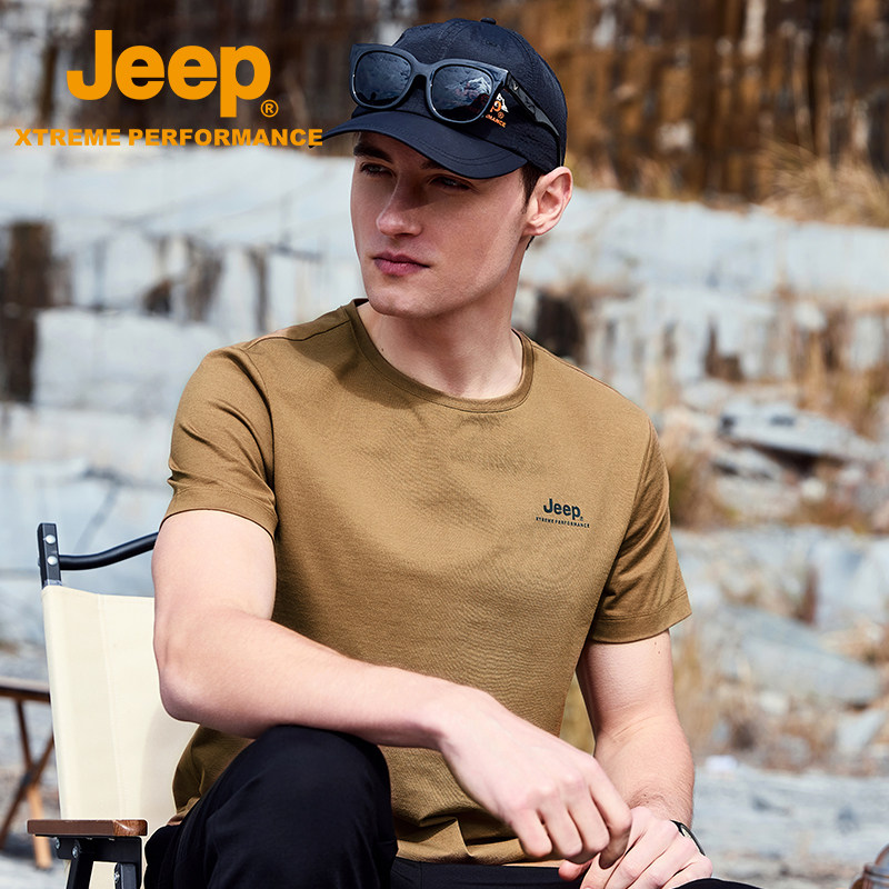 Jeep吉普夏季户外凉感T恤透气冰丝珠地短袖弹力抗皱大码工装上衣