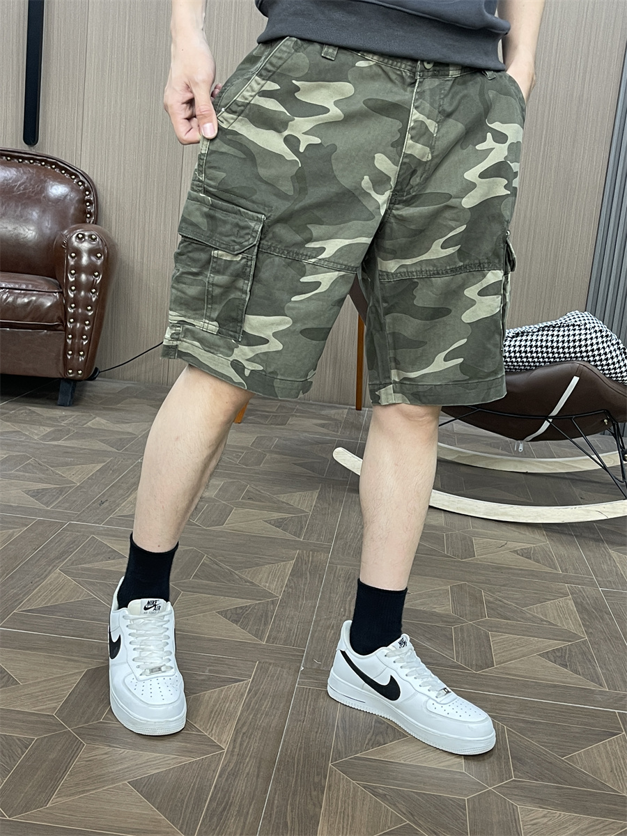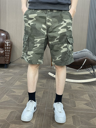 夏季宽松直筒休闲短裤男款工装百搭运动裤五分青年5中裤马裤迷彩
