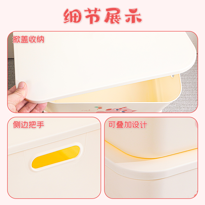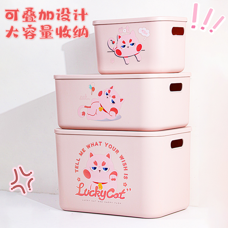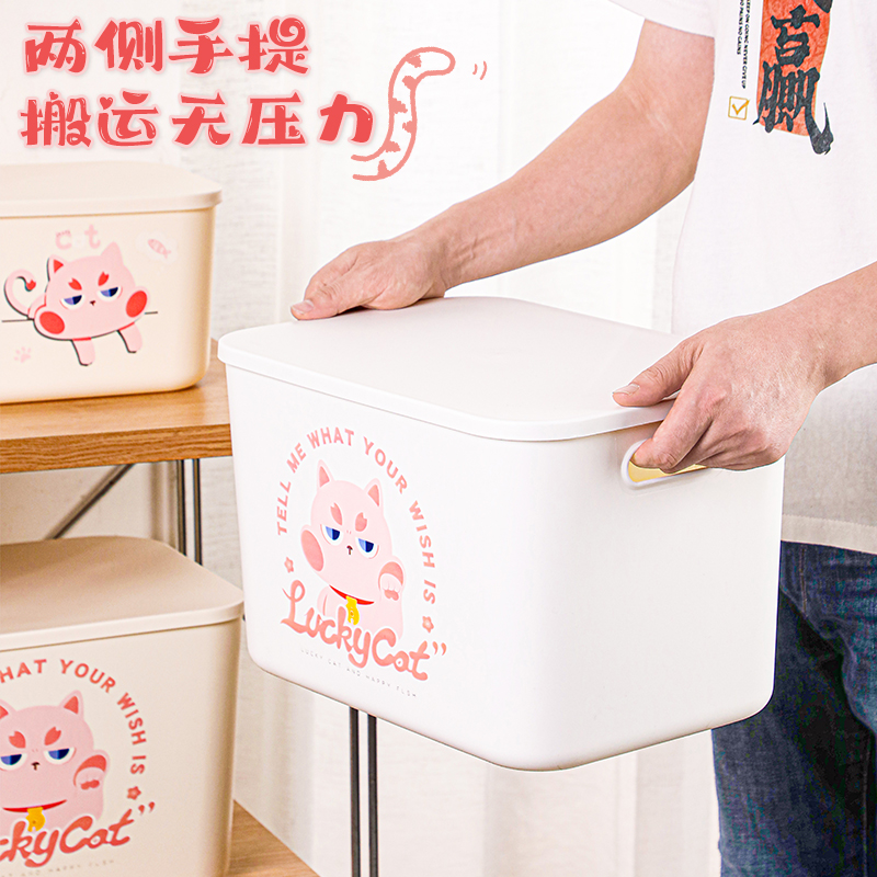 居家防尘塑料收纳箱卡通衣服衣物玩具大容量桃花猫整理储物盒家用