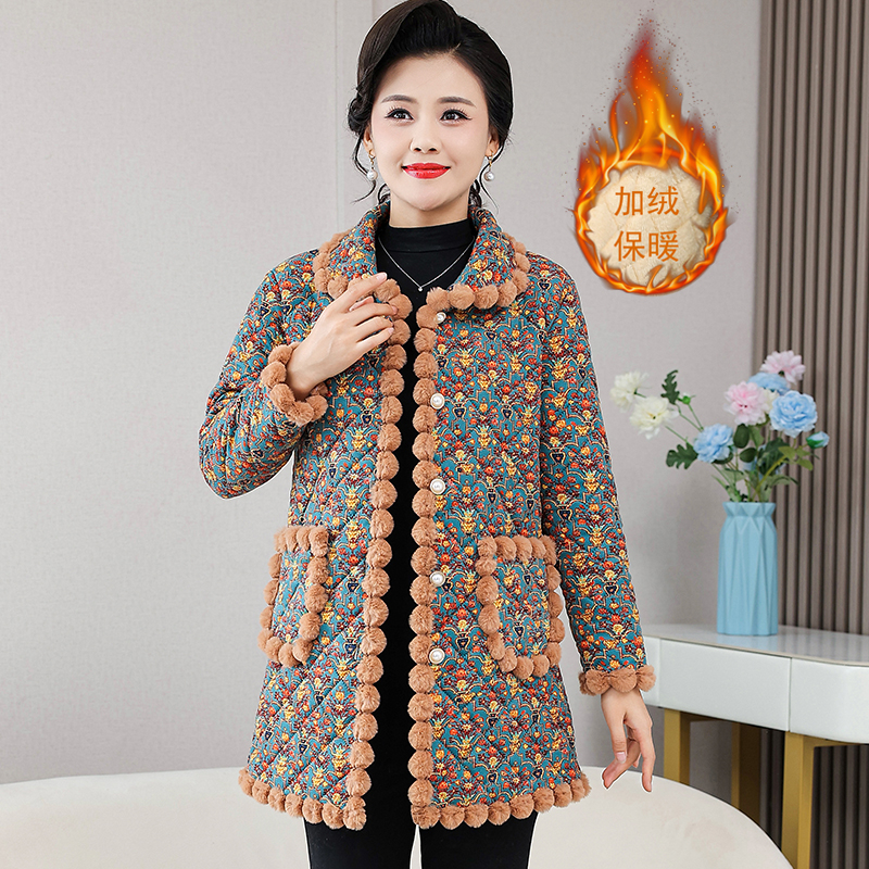 妈妈洋气加绒加厚棉服中年女秋冬装新款棉袄中老年人女装棉衣外套
