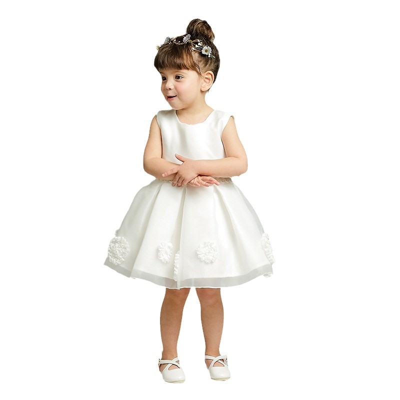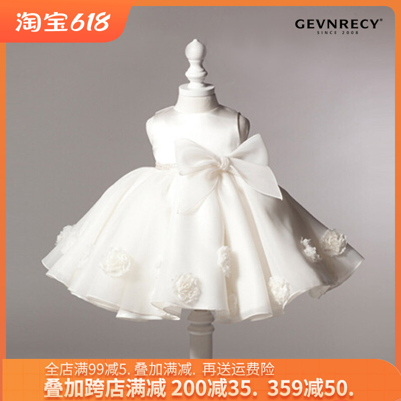女宝宝礼服小童婴儿周岁生日摆酒蓬蓬裙女童花童婚纱裙白色公主裙