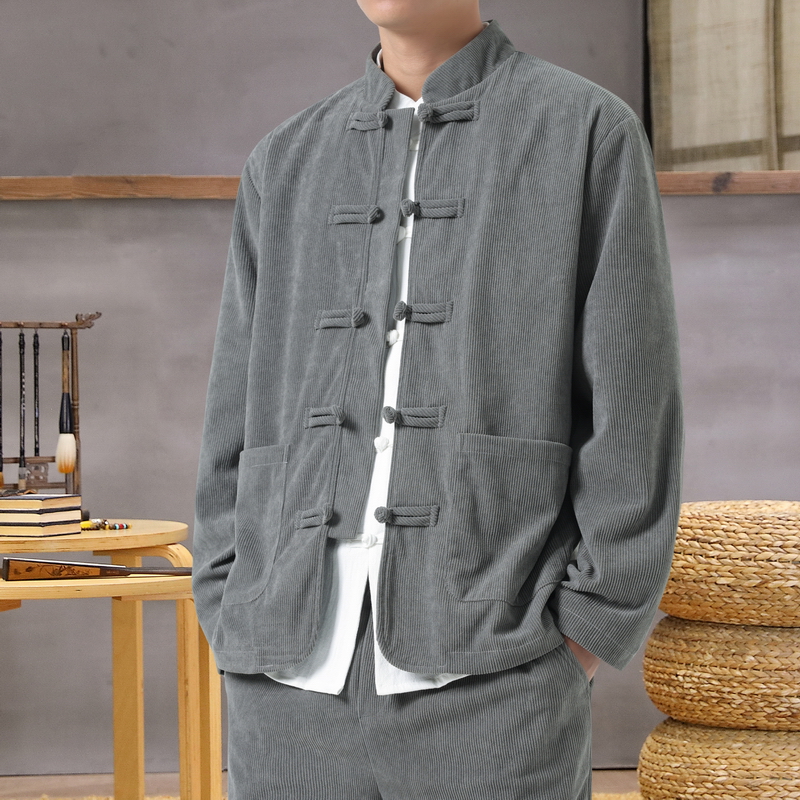中国风男式复古灯芯绒夹克外套加大码中式盘扣唐装中式民国中山装