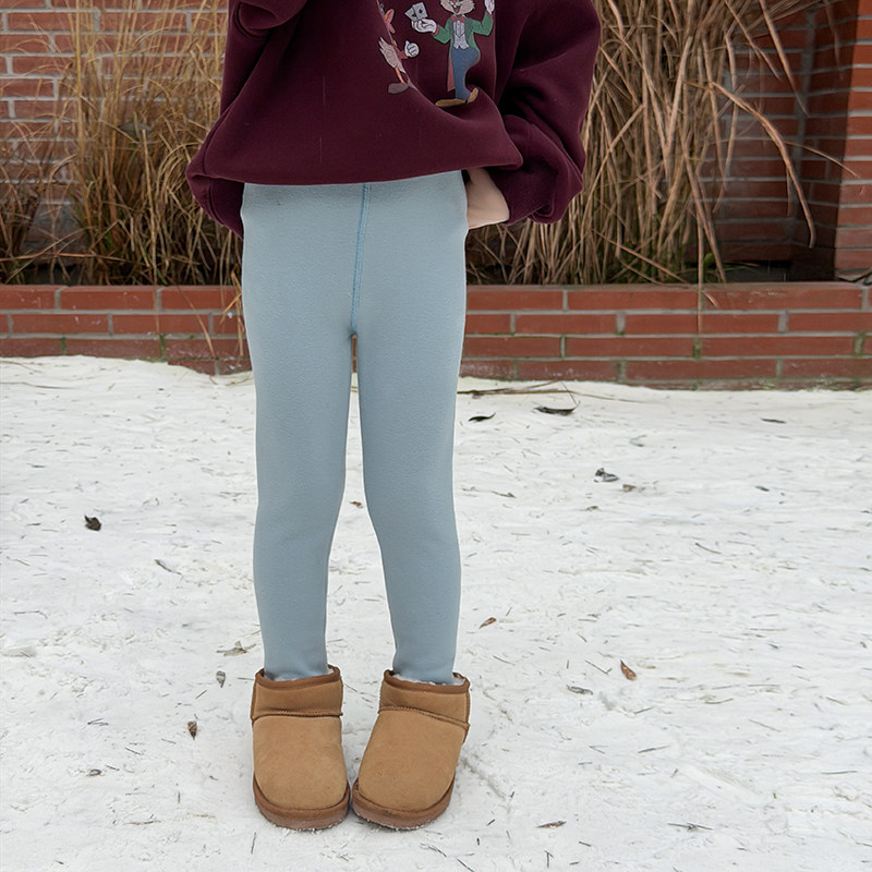 Yumi妈350g厚撸猫绒女童裤子软弹暖加绒加厚羊毛拉架打底裤25K043