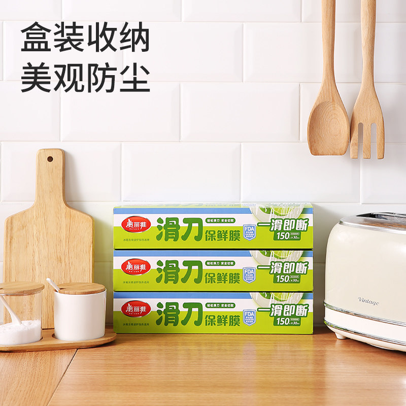 美丽雅滑刀式保鲜膜食品级家用30cm大卷PE保鲜膜盒切割器神器剩菜