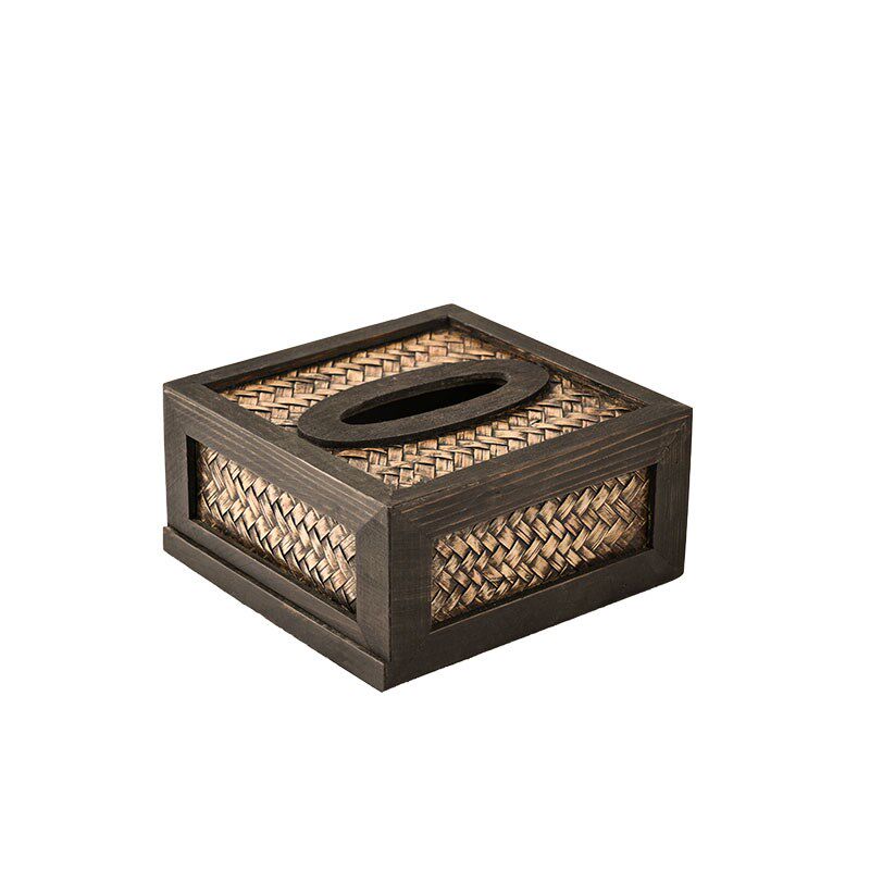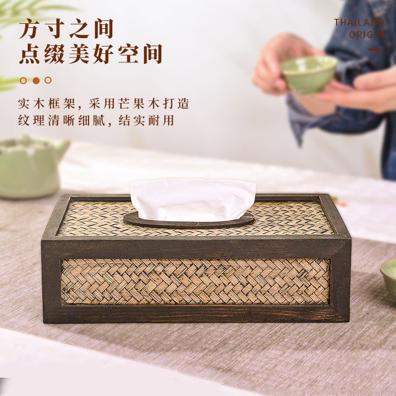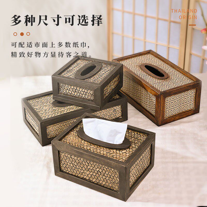 实木竹编纸巾盒客厅桌面家用复古木质中式抽纸盒酒店网红款中古风