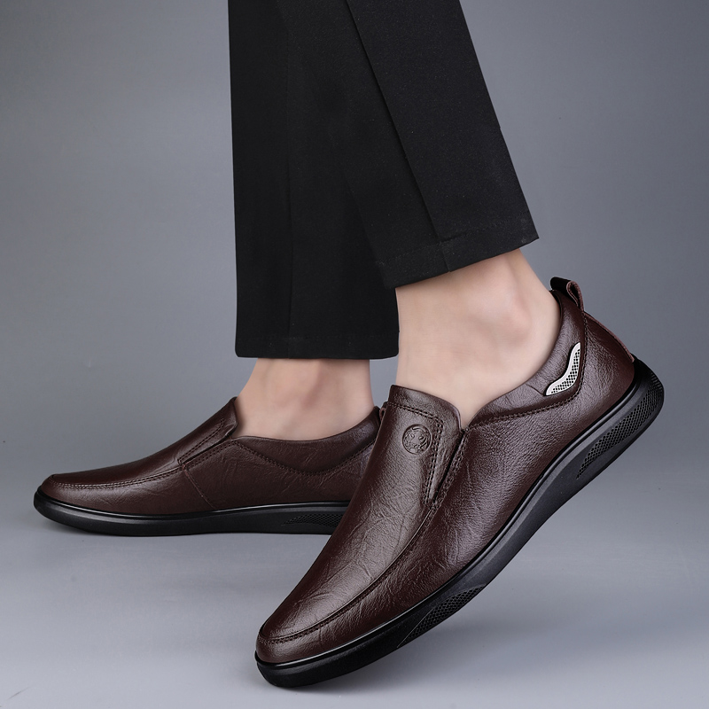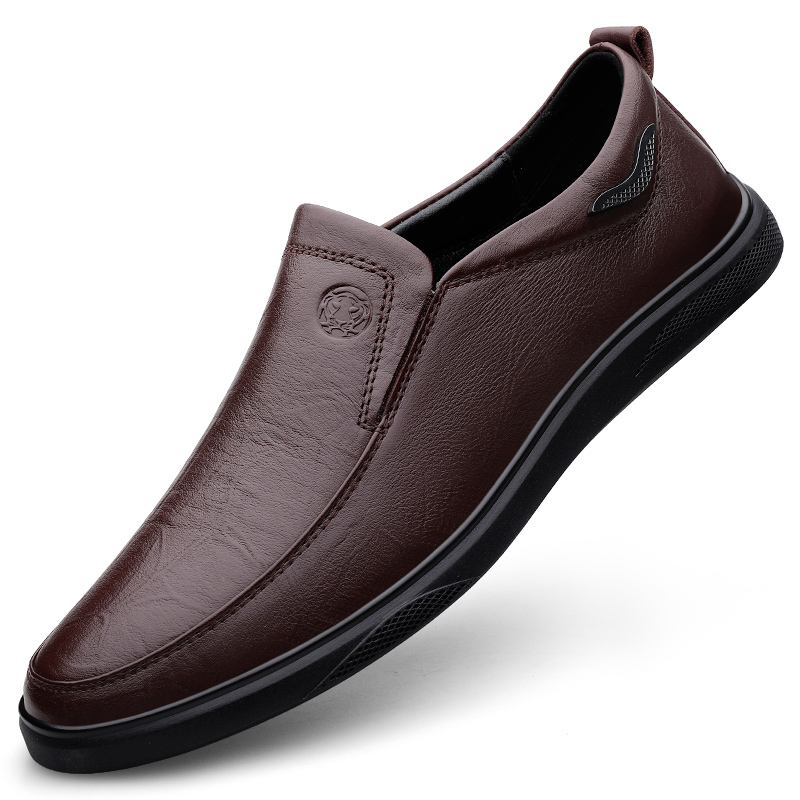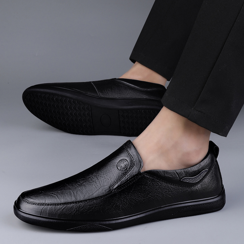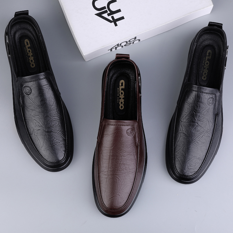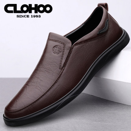 巧乐虎真皮男士休闲皮鞋套脚懒人鞋透气软底豆豆鞋乐福鞋子男