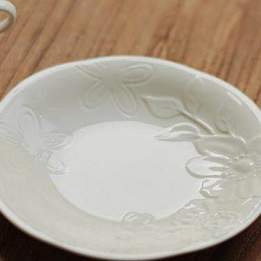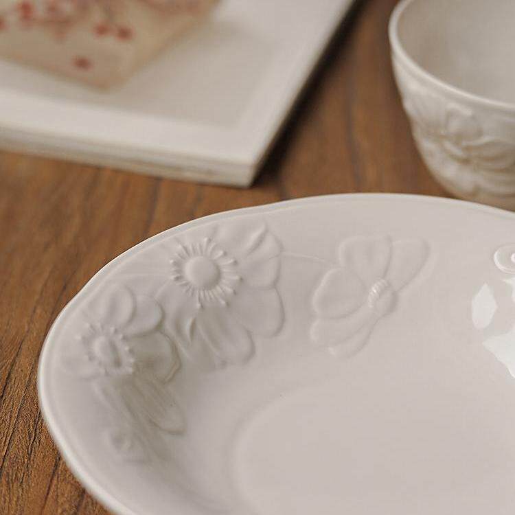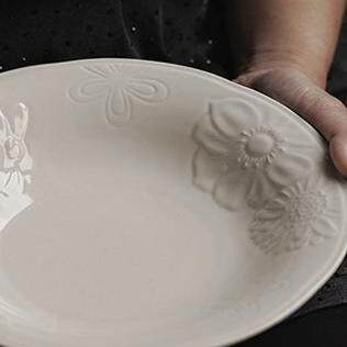高颜值欧式深盘联名中古手工浮雕花卉陶瓷圆盘水果盘盘大骨瓷深盘