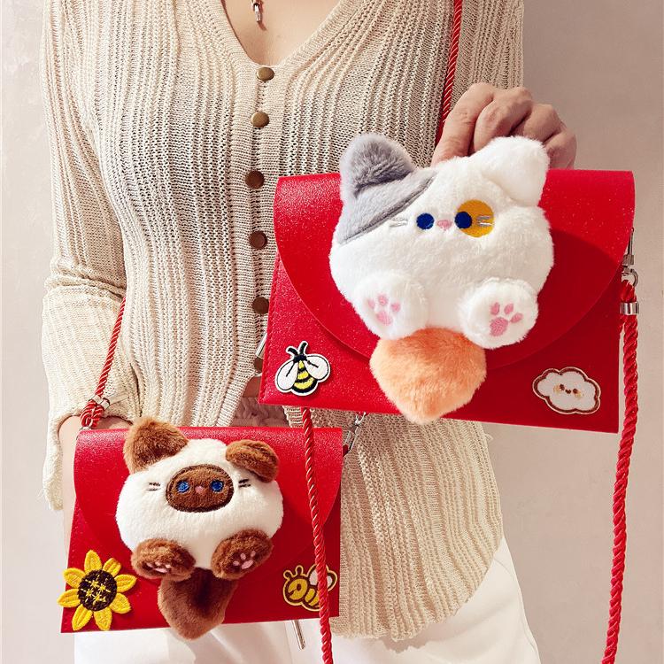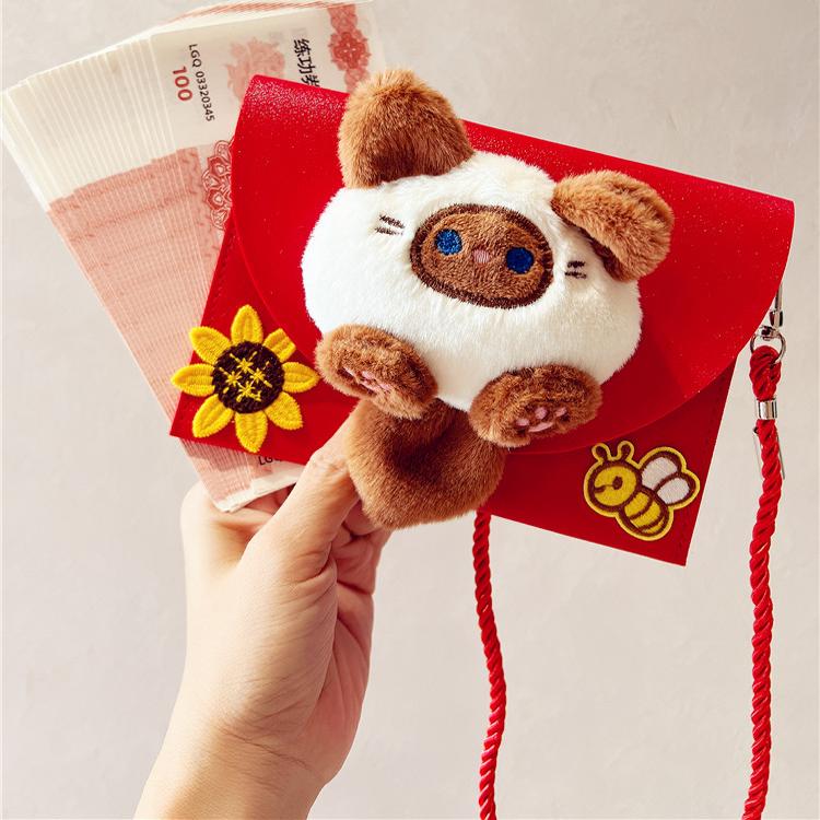 手工制作皮质儿童压岁钱收纳包带挂绳创意利是封毛绒千元横款红包