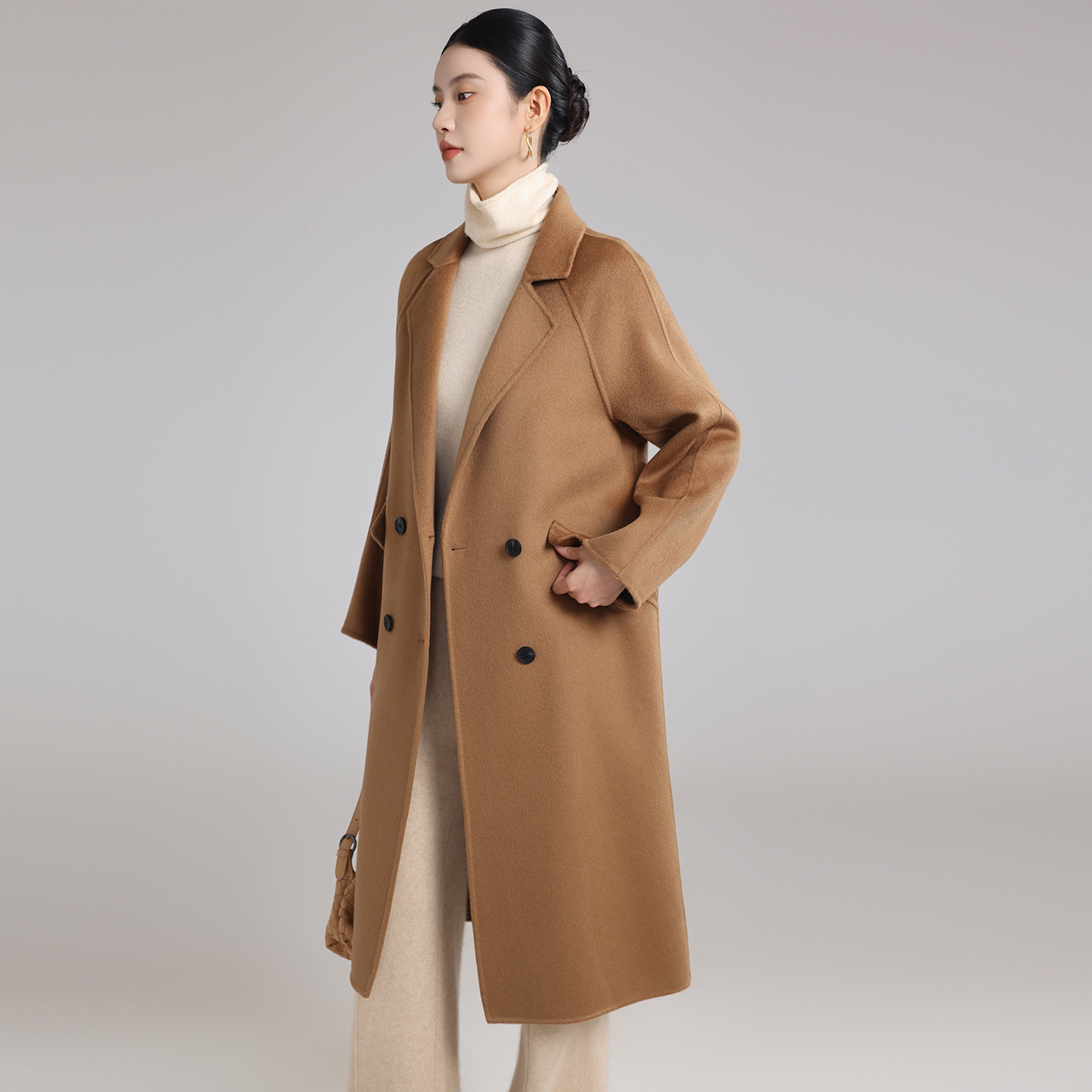 新款西装领双排扣双面呢10羊绒大衣女茧型显瘦时尚气质羊毛呢