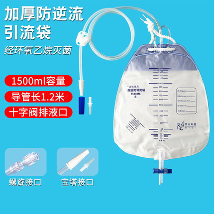 医用无菌防逆流引流袋加厚一次性男用女老人导尿管胆汁螺口集尿袋