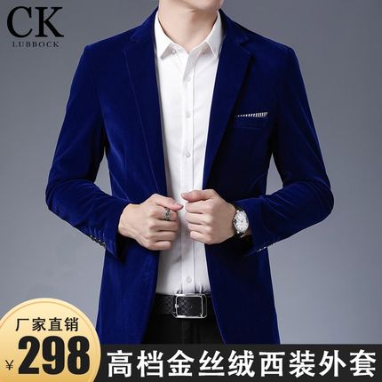 高档男士金绒丝西服外套2022年秋季新款韩版商务休闲单西装夹克潮