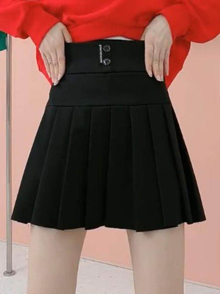 大码港风黑色百褶裙女春秋胖mm字母收腹弹力高腰半身裙a字短裙子