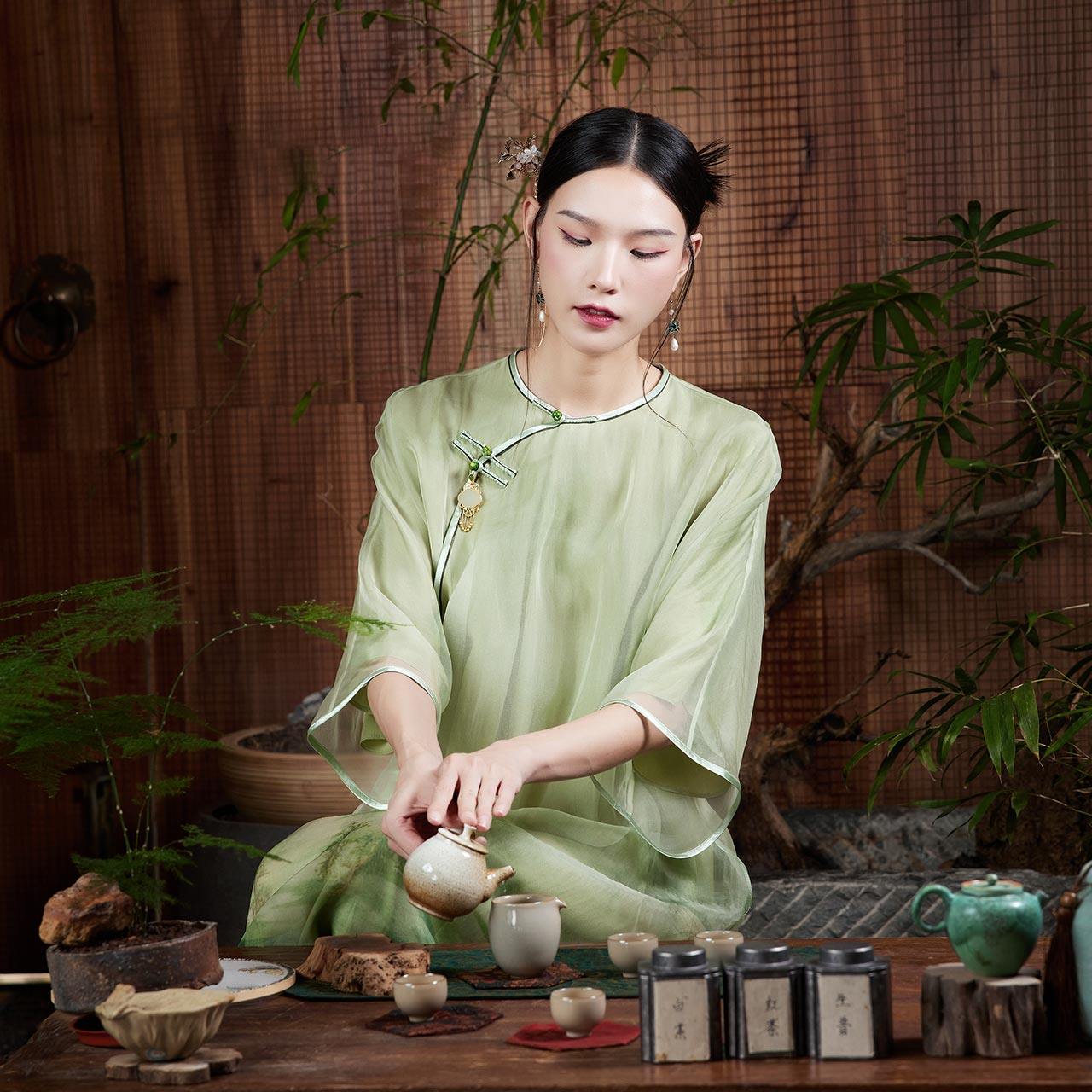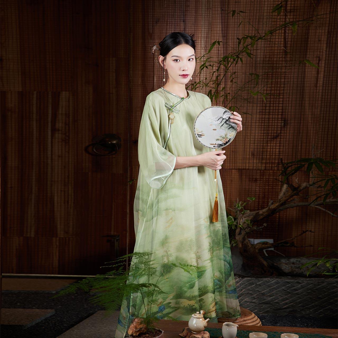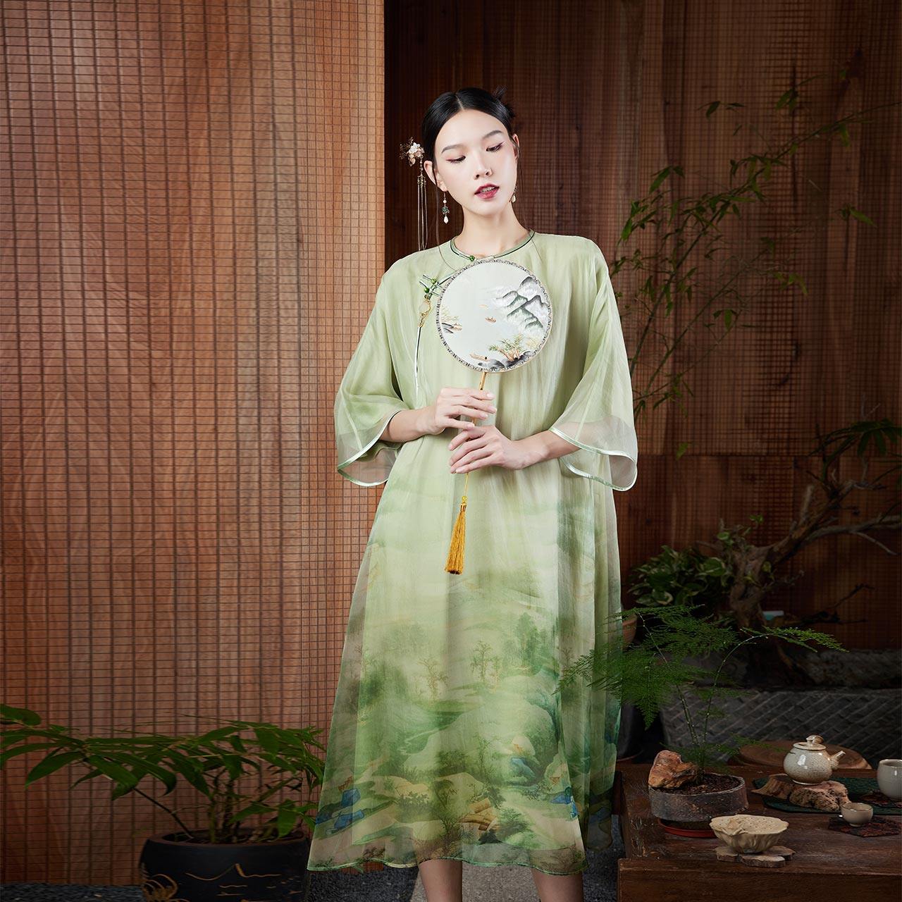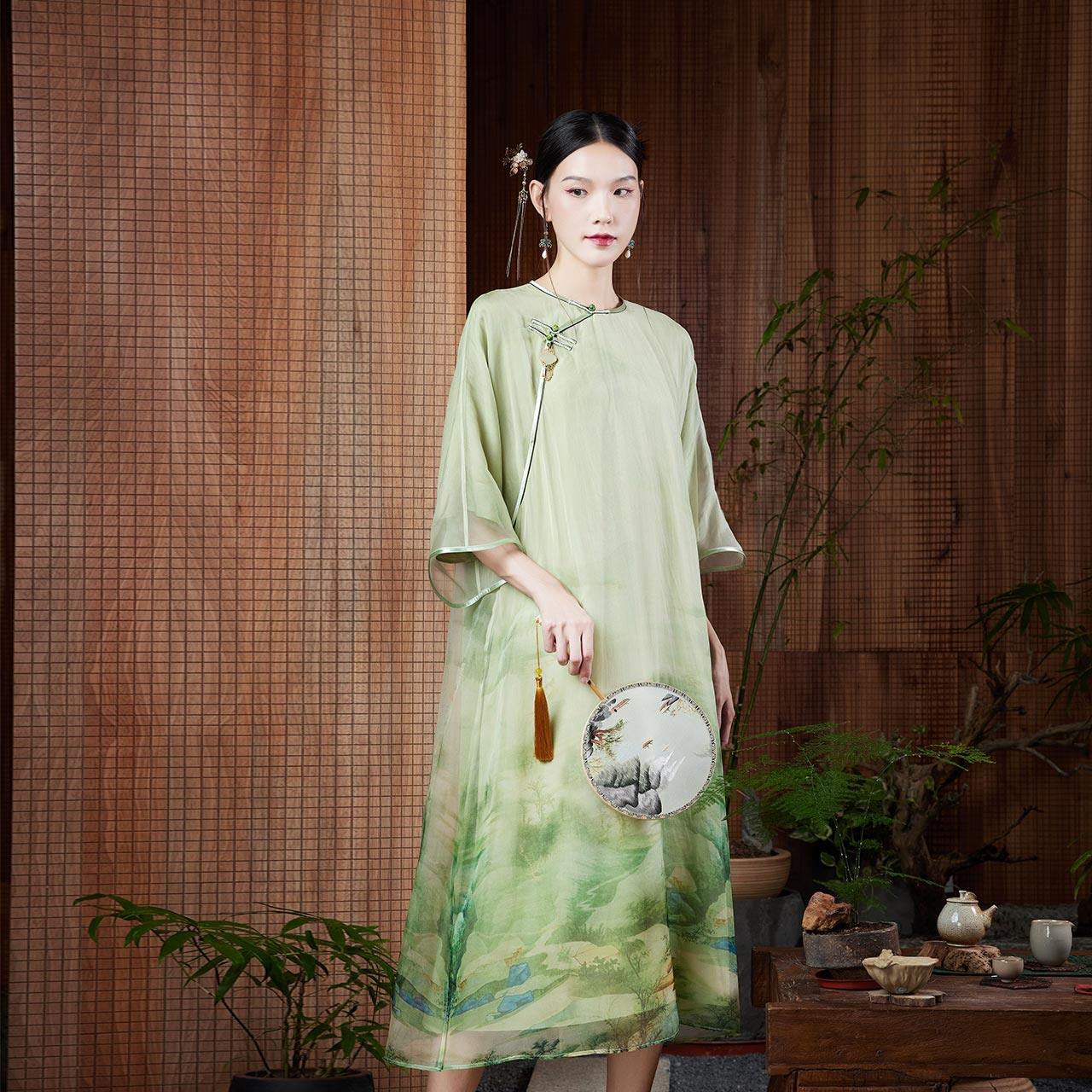 陌遇丨如茵丨夏季中国风女装新款复古改良真丝印花中式旗袍连衣裙