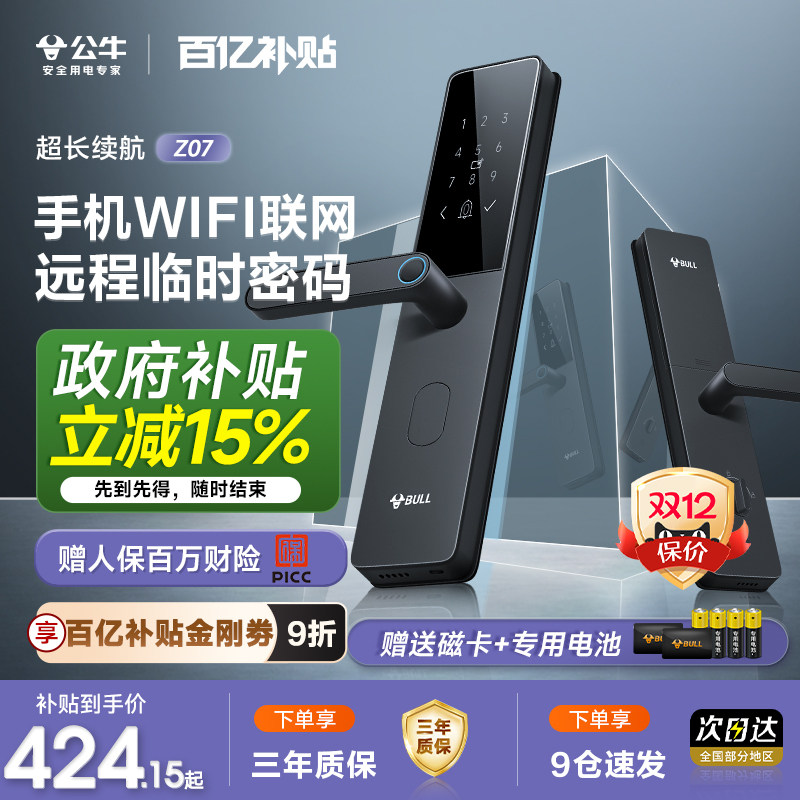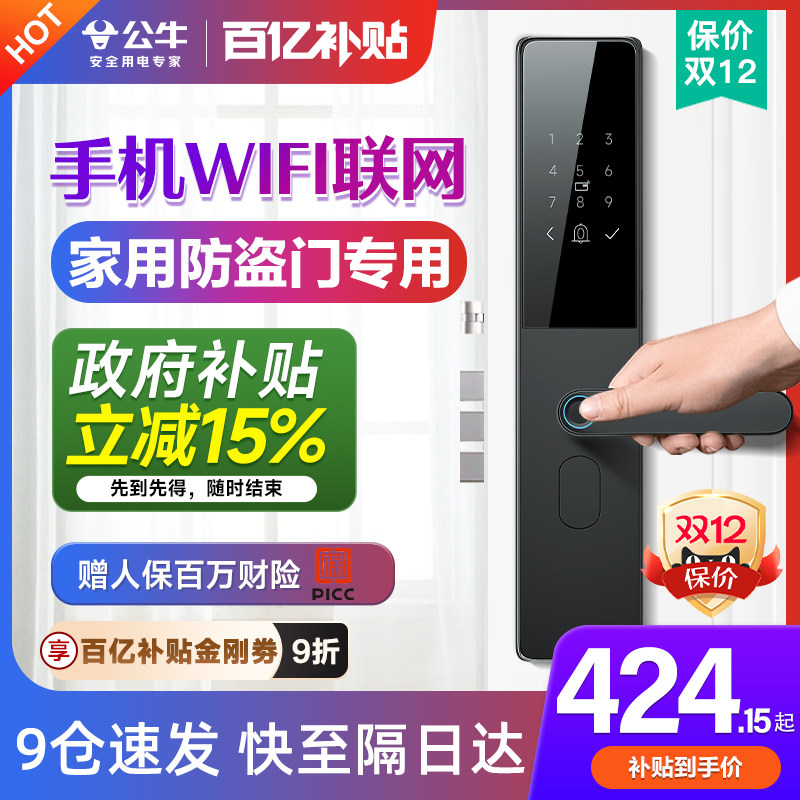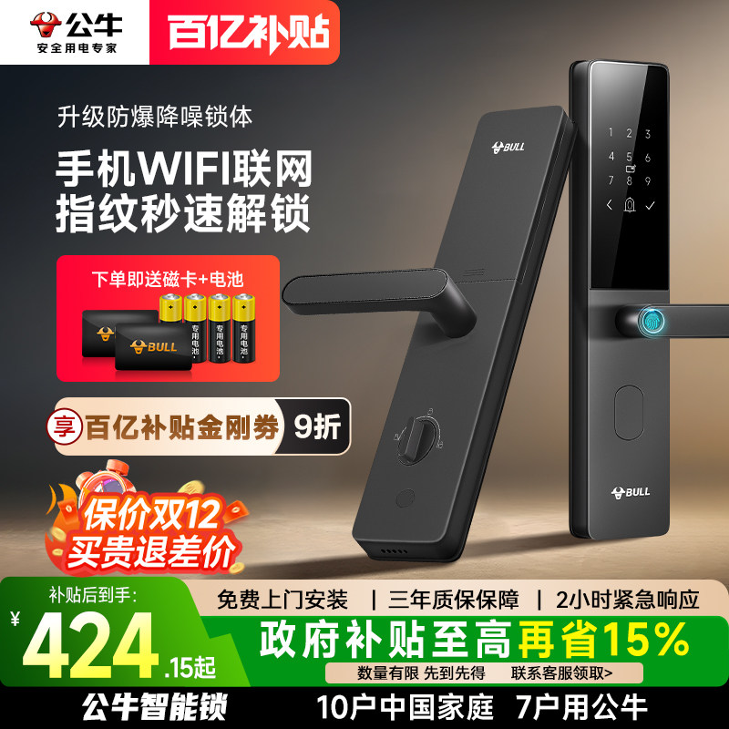 公牛指纹锁智能门锁密码锁家用门锁家用防盗门智能锁入户门电子锁
