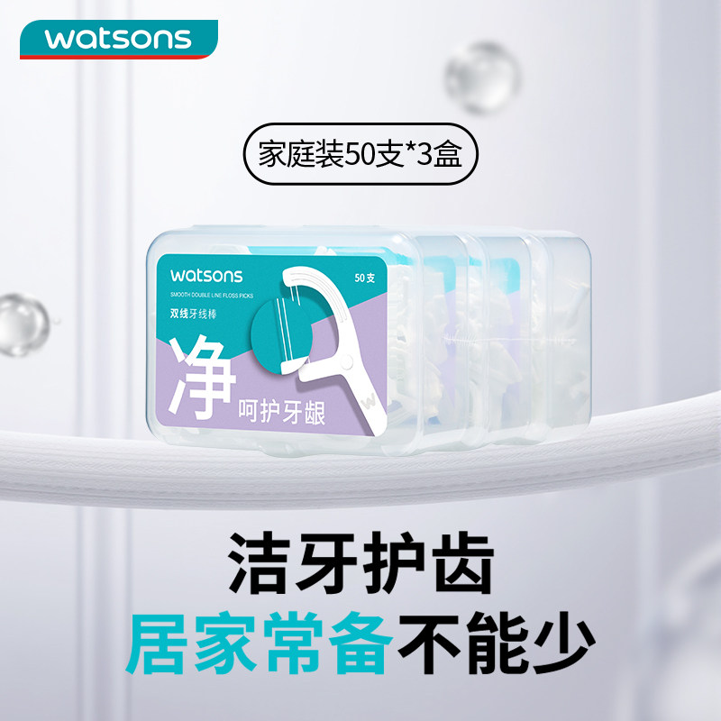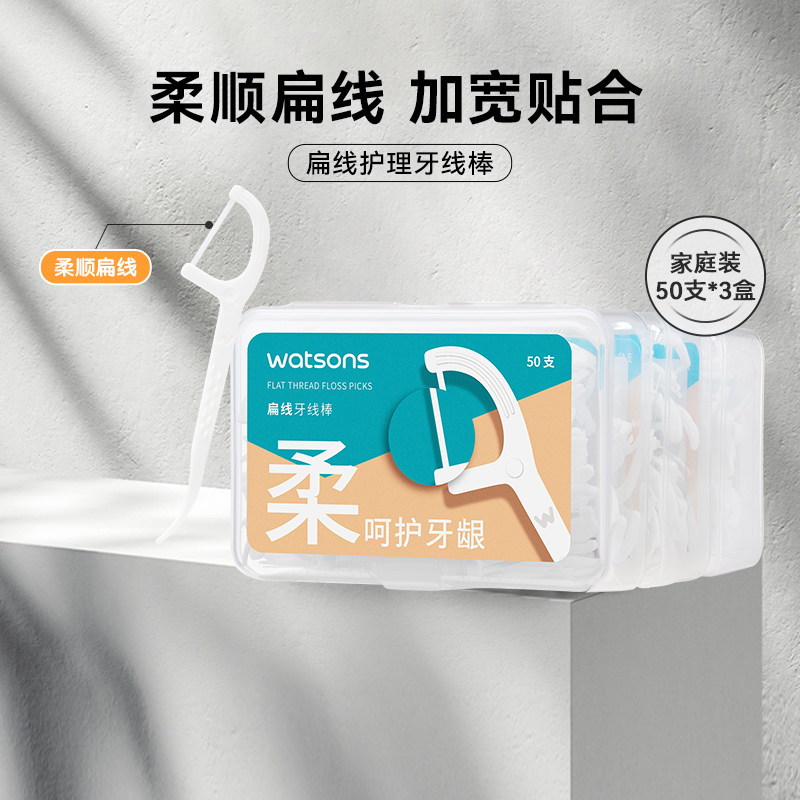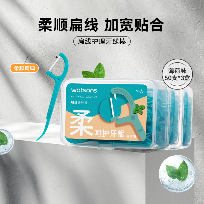 【热销推荐】屈臣氏顺滑双线牙线50支6盒牙签圆线扁线薄荷味