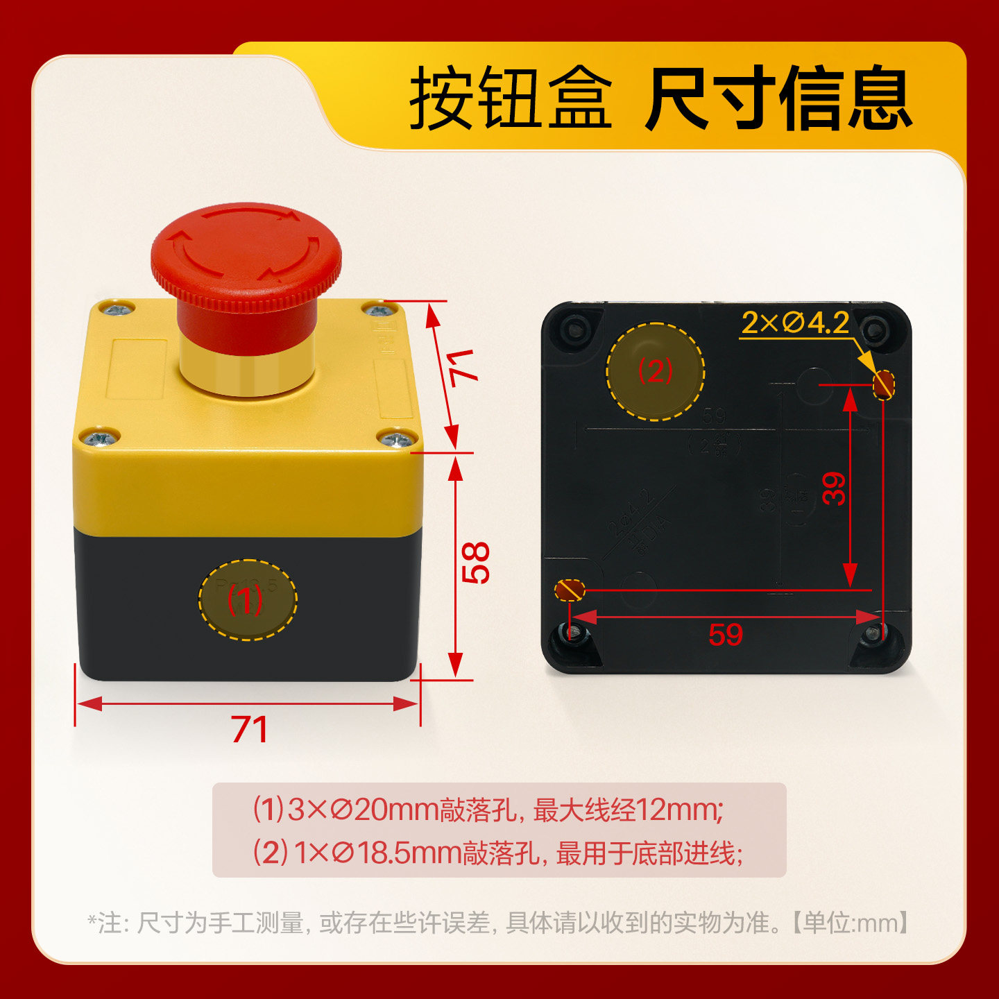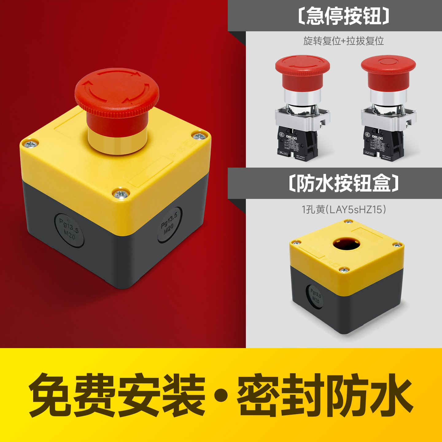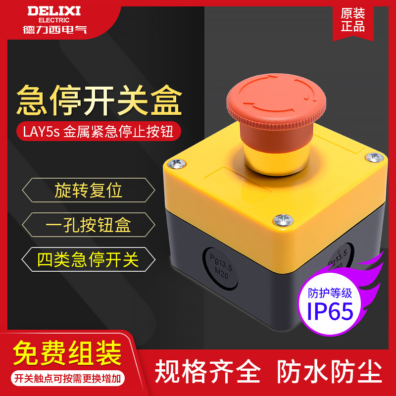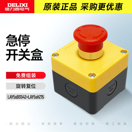 德力西电气急停开关盒LAY5sHZ15黄色按钮防水盒BS542旋转复位常闭