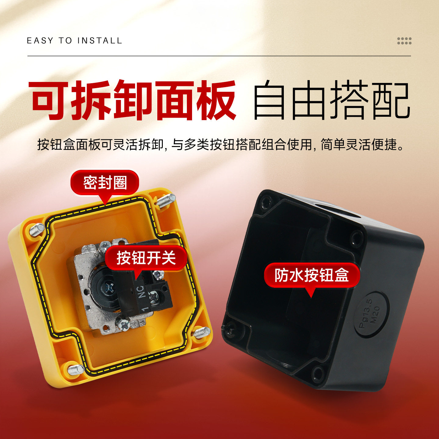 德力西一孔防水旋转复位开关盒