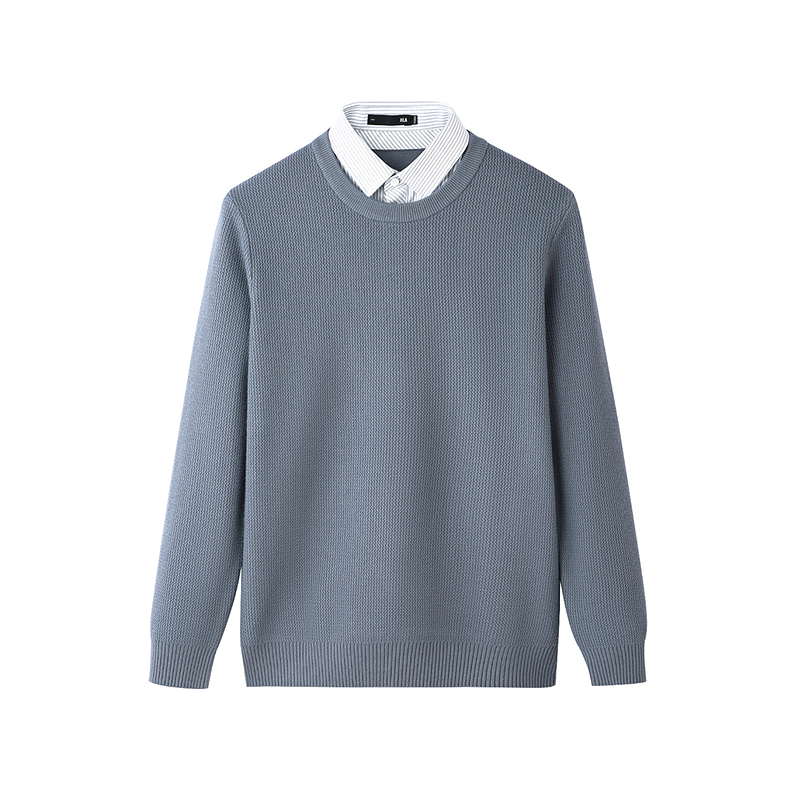 HLA/海澜之家中年男士长袖双领针织衫2025秋季新假两件黑色毛衣男