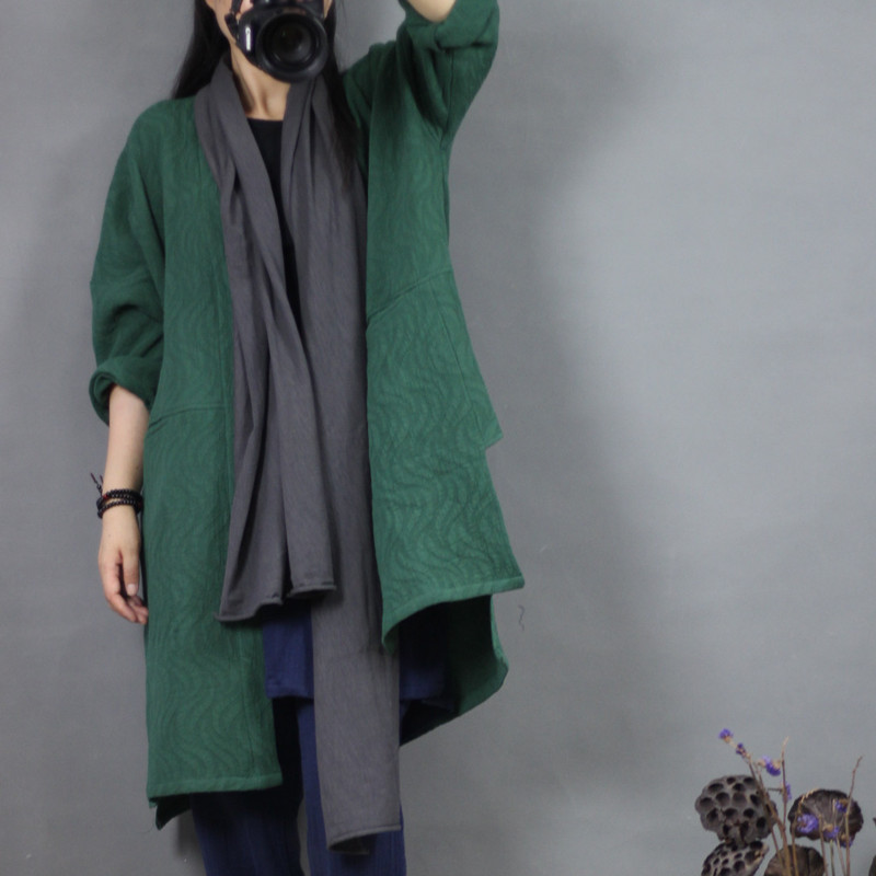 原创女装 棉麻不对称文艺复古风衣好搭配宽松开衫肌理面料大外套