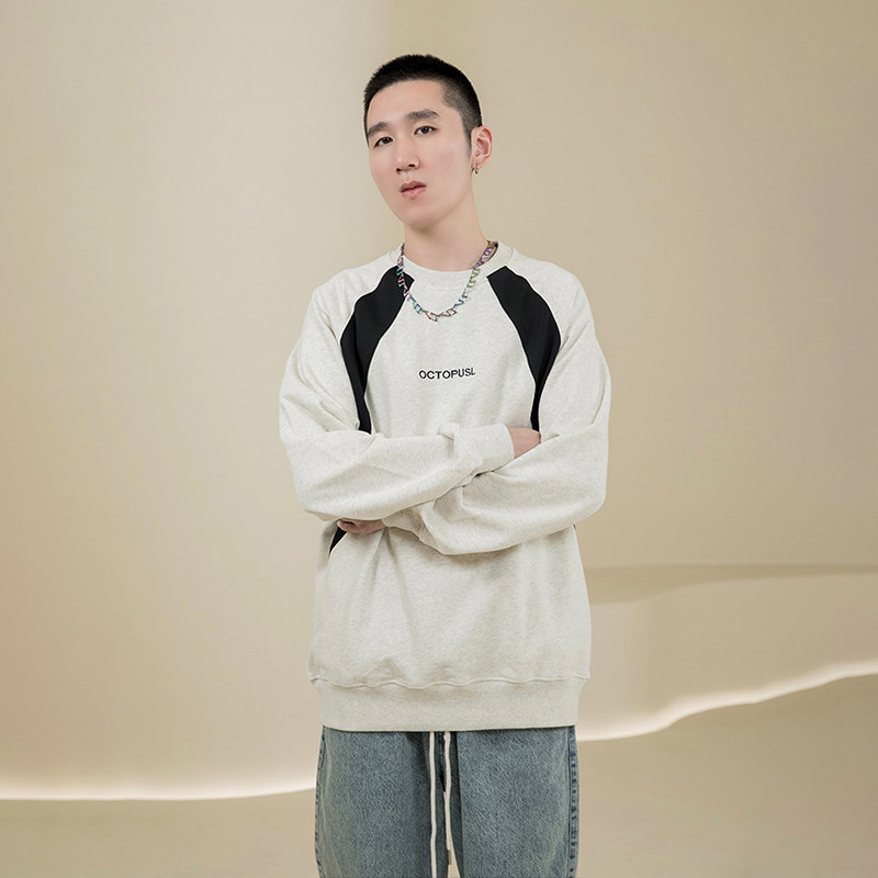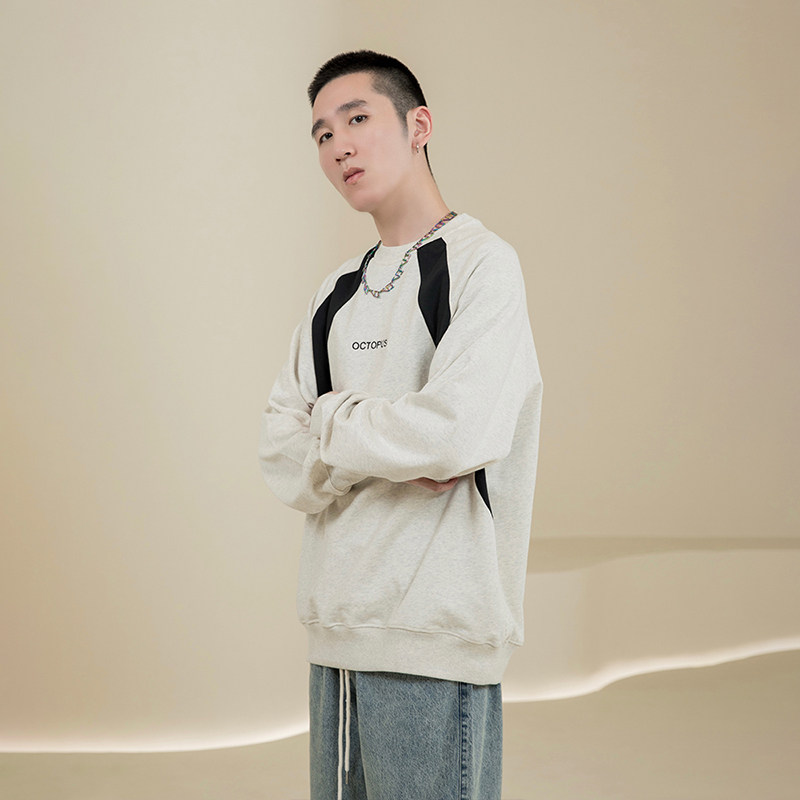 烦恼的Octopusl国潮美式休闲拼色卫衣宽松百搭圆领套头情侣长袖男