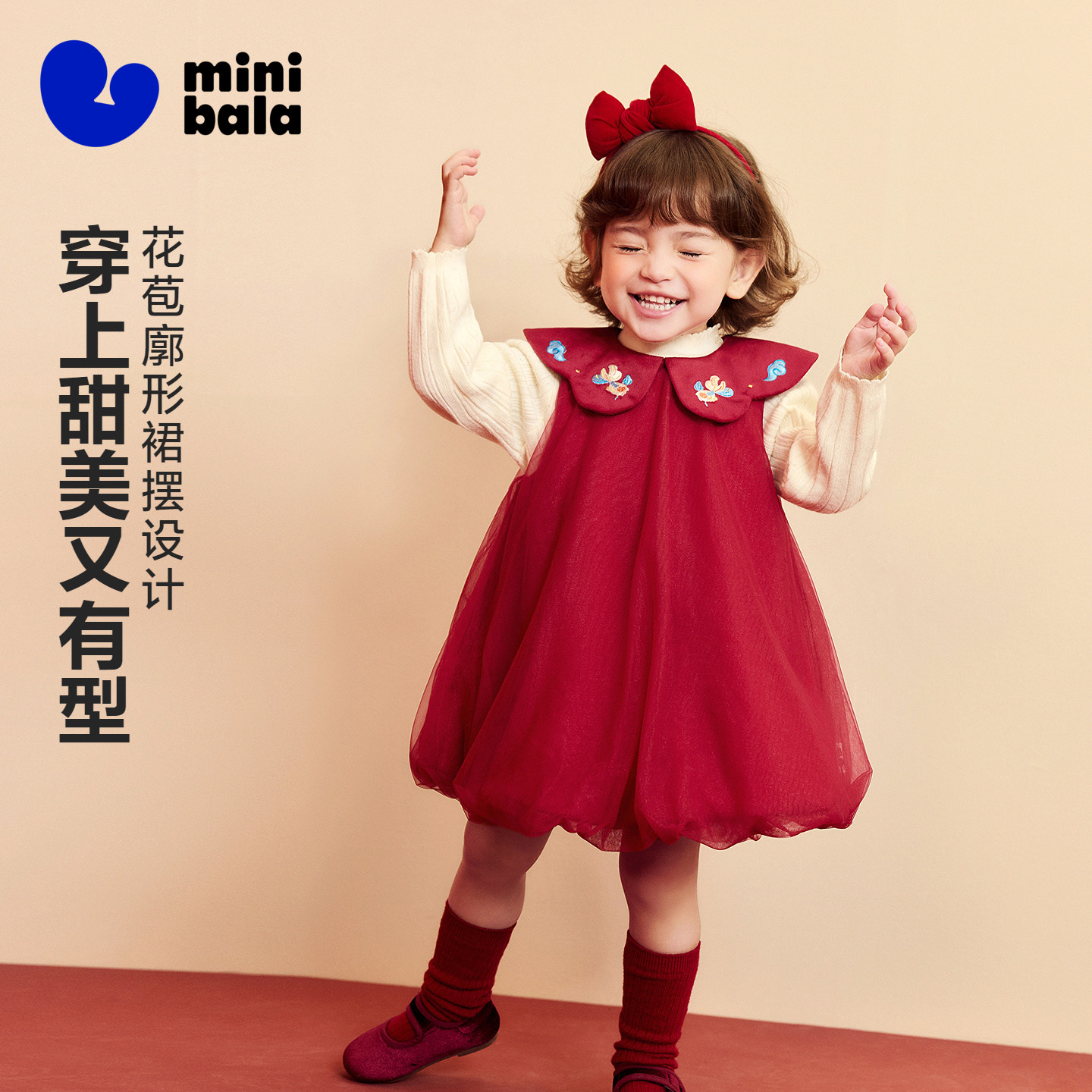 迷你巴拉巴拉宝宝新春网纱连衣裙
