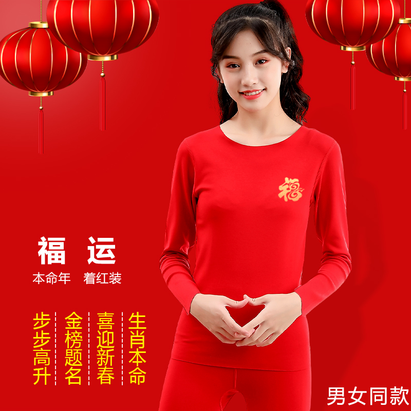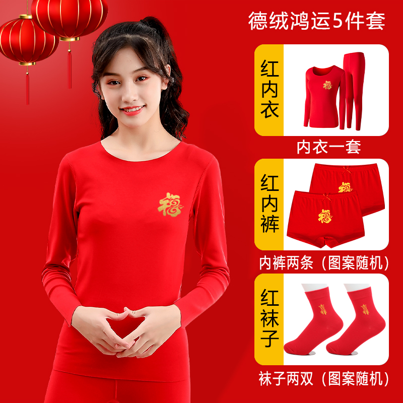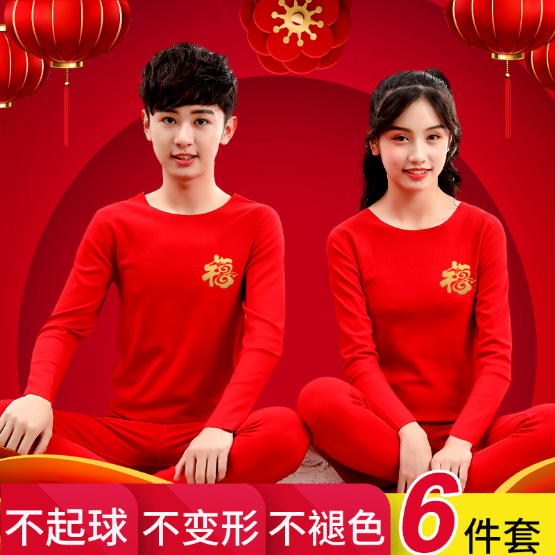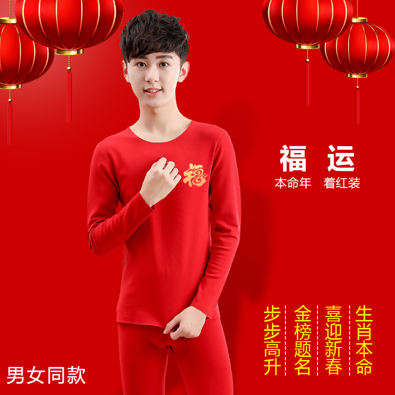 本命年儿童内衣套装蛇年男童女大童德绒12岁学生红色秋衣秋裤秋冬