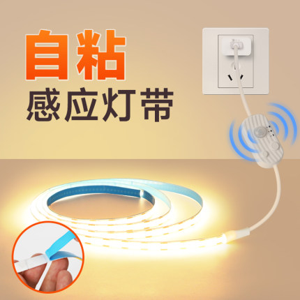 感应灯带 插电款智能人体床头柜橱柜浴室柜床边床底下usb自粘灯条