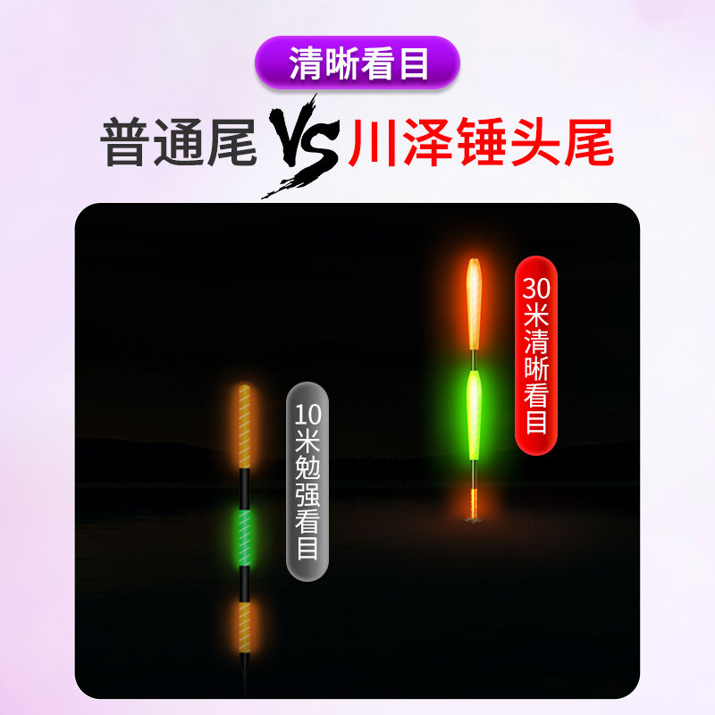 川泽pj夜光漂咬钩变色电子漂日夜两用加粗醒目高灵敏鲫鱼漂钓鱼漂