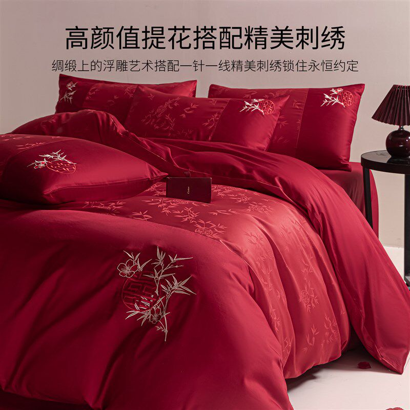 高级感提花结婚四件套大红色婚庆床单被套罩喜被婚床婚嫁床上用品