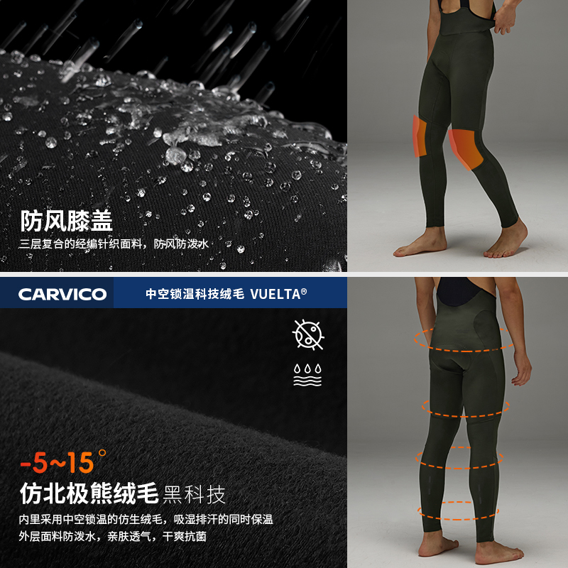 EVR双箭头骑行背带长裤男Carvico面料自行车秋冬抓绒保暖透气防风