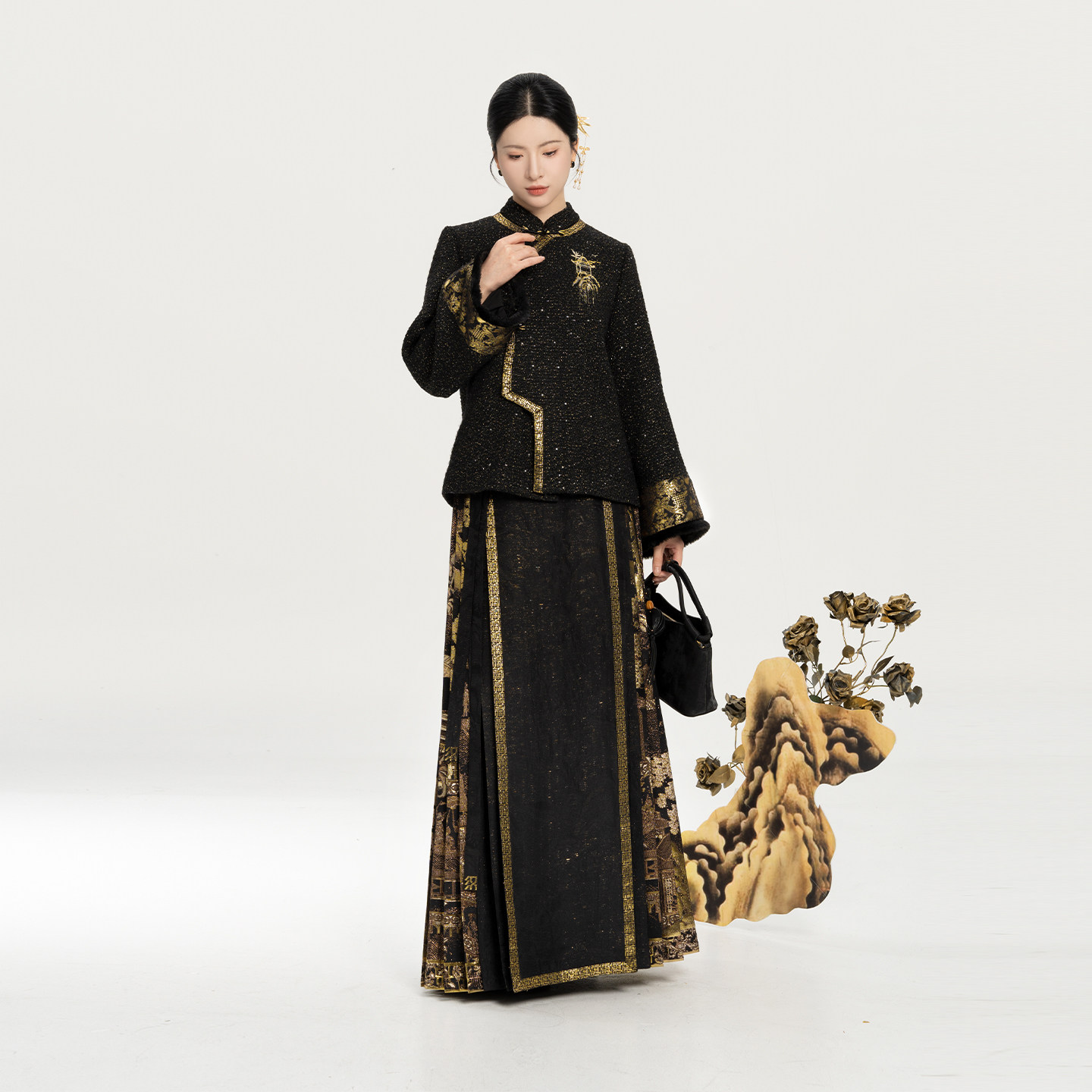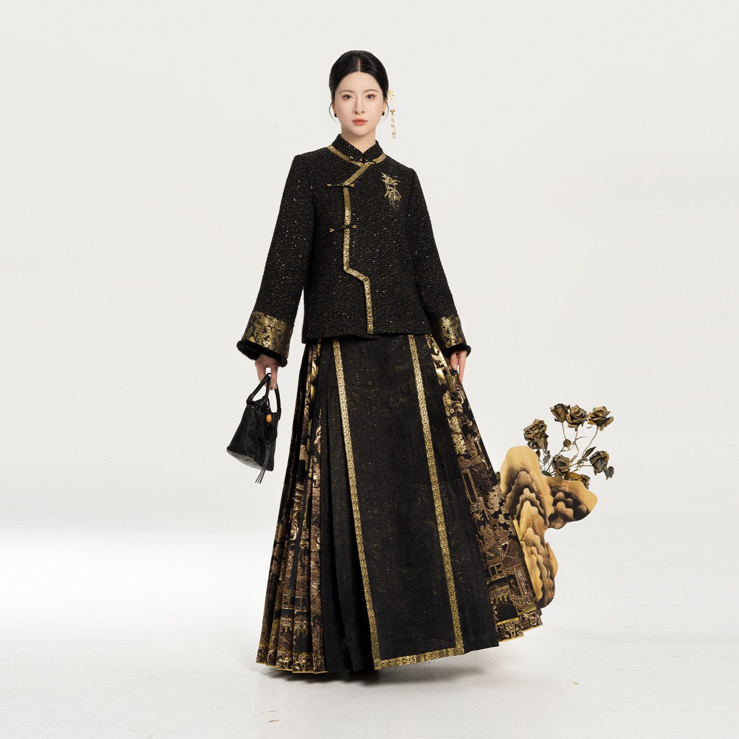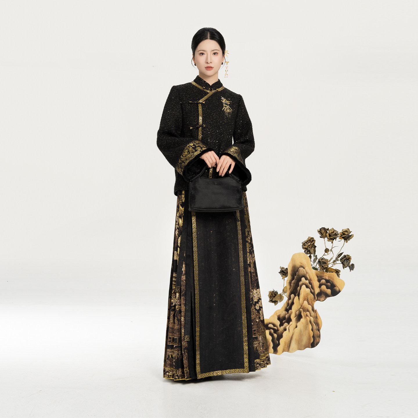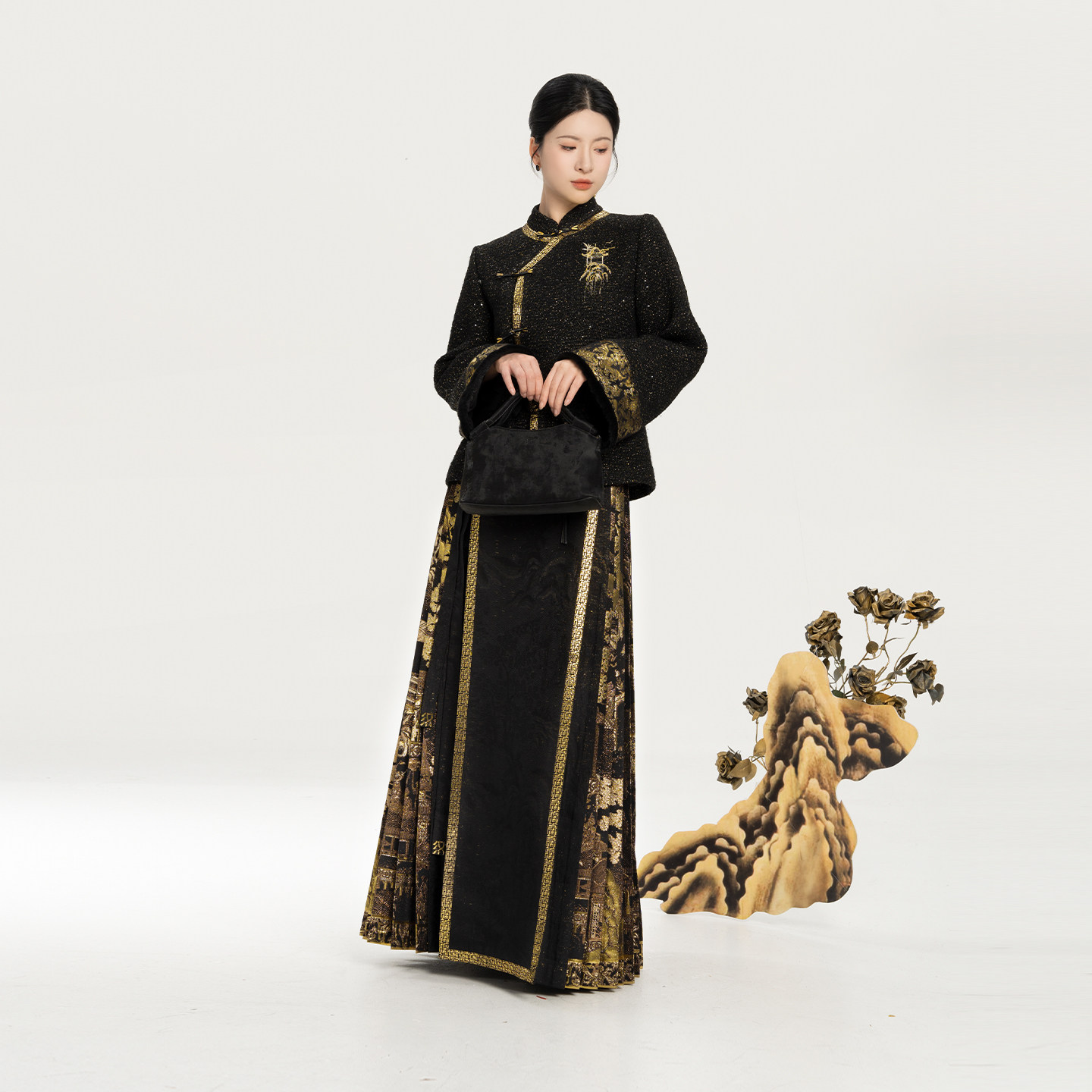 织造司×广东省博物馆联名走秀款【龙舟争渡】立领外套织金马面裙